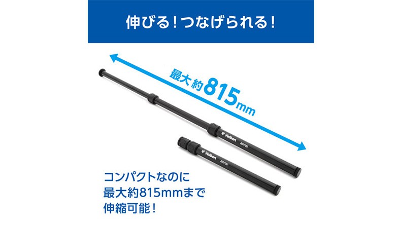 三脚や一脚などに連結して高さを延長できる便利な伸縮式ポール