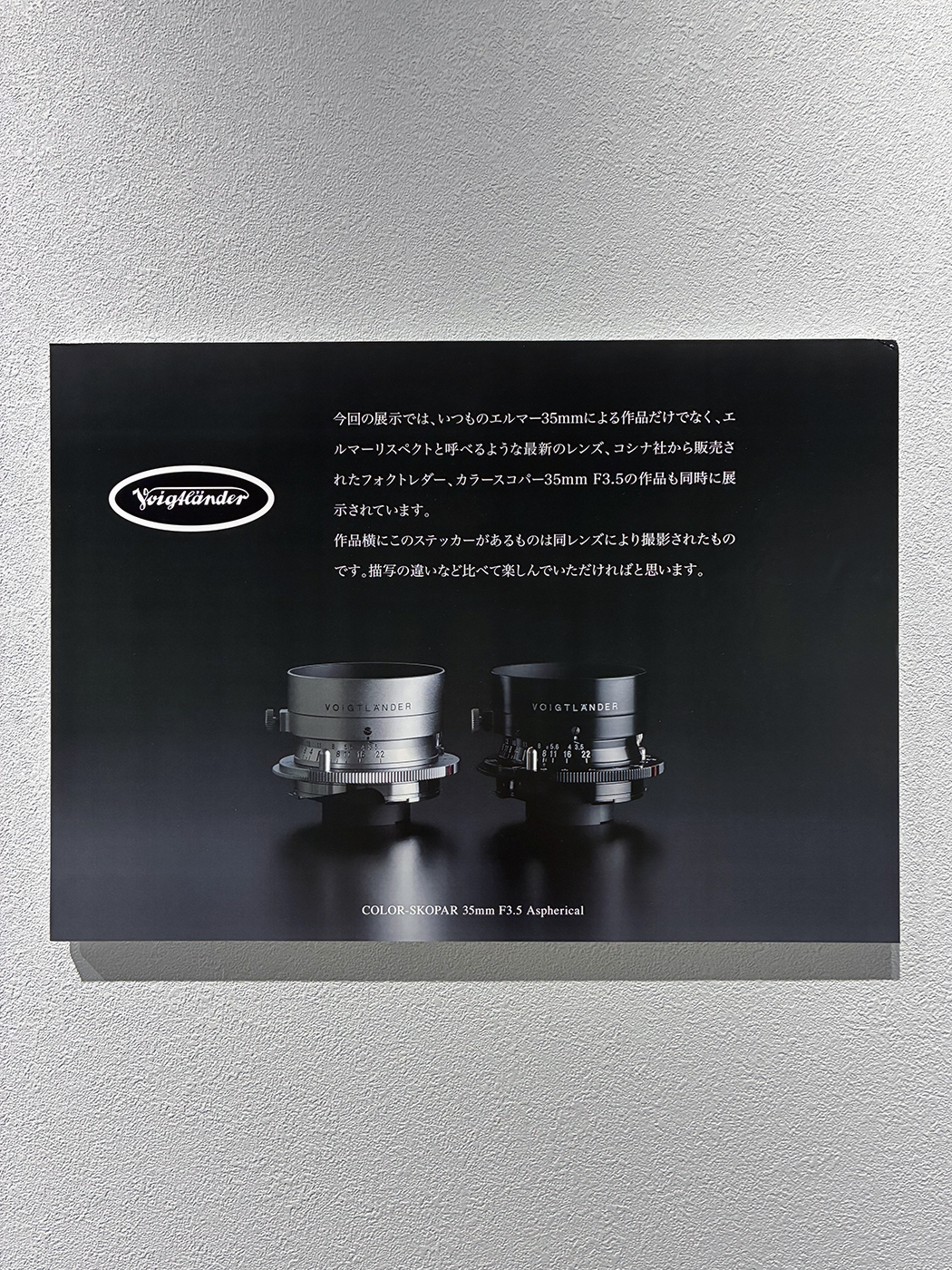 「エルマー35」展は、カラーにモノクロ、フィルムにデジタル、さまざまな表現があり、観ていて楽しいので、みなさまもよかったら。新宿北村写真機店には、写真展やカメラ販売、そのほかもセルフ写真館など、いろいろな楽しみ(→https://photoandculture-tokyo.com/contents.php?i=4398)がありますので、お散歩がてら、ぜひいらしてください。