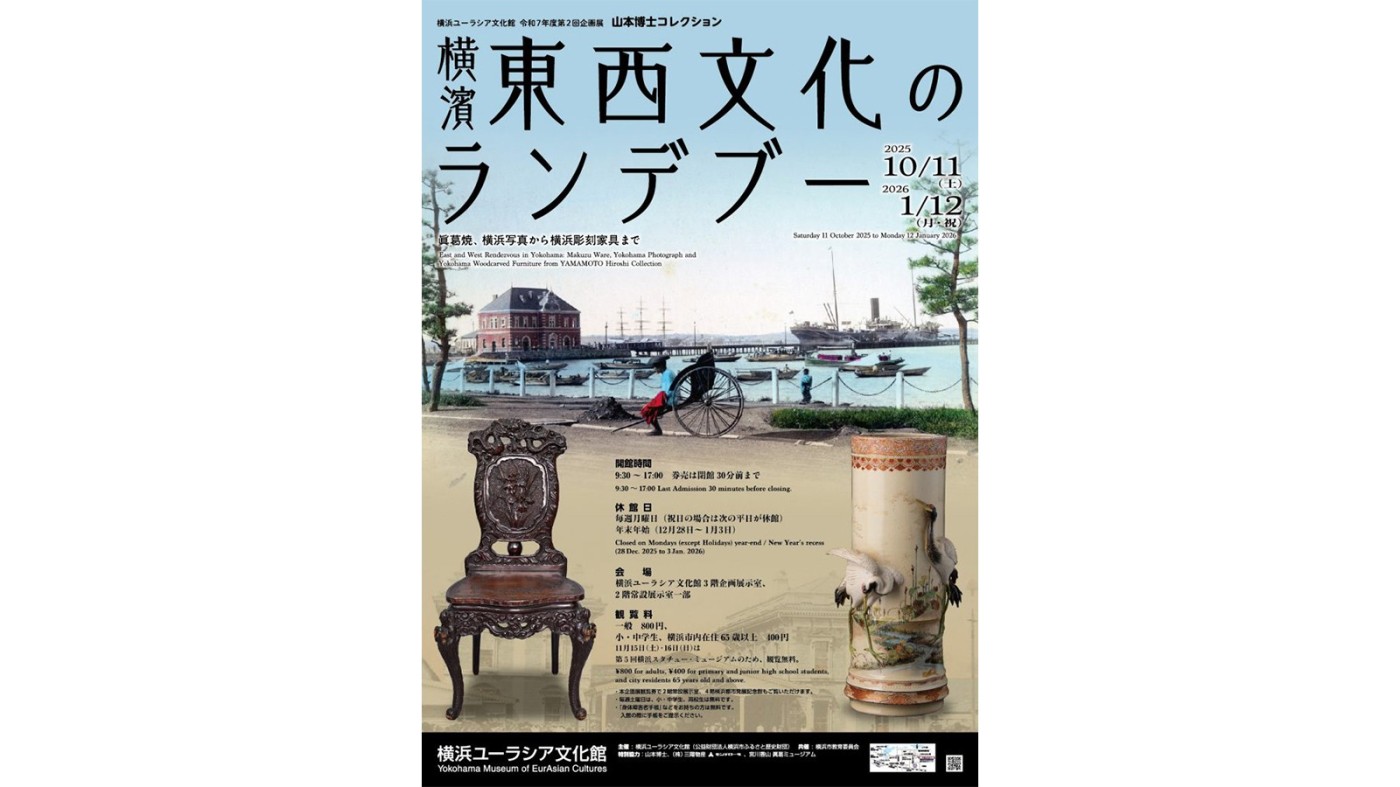 横浜ユーラシア文化館で「山本博士コレクション 横濱 東西文化のランデブー:眞葛焼、横浜写真から横浜彫刻家具まで」が開催される。