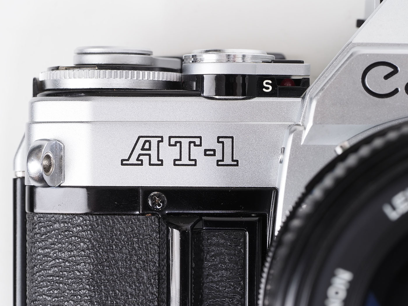 ボディ前面の機種のロゴですね。マニュアル一眼レフなのにAシリーズの仲間というのが解せないんですが、TA-1の方が良かったんじゃないかしら。ネームの問題じゃないか。