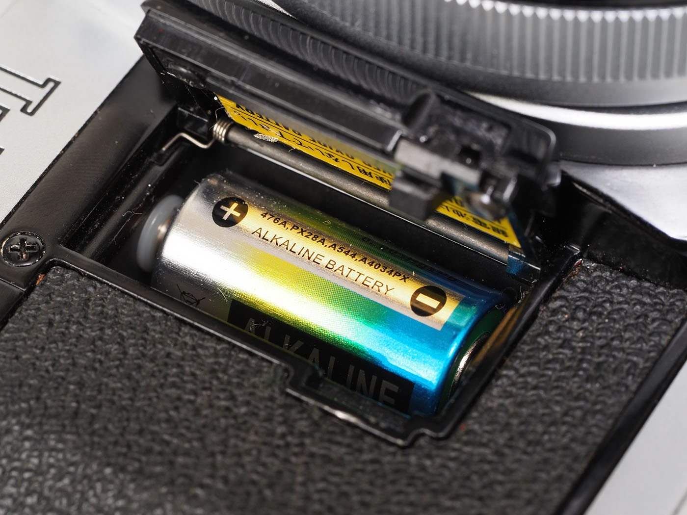 バッテリーはAE-1と同じ、4LR44を使います。生意気です。電子シャッターだから仕方ないのか。