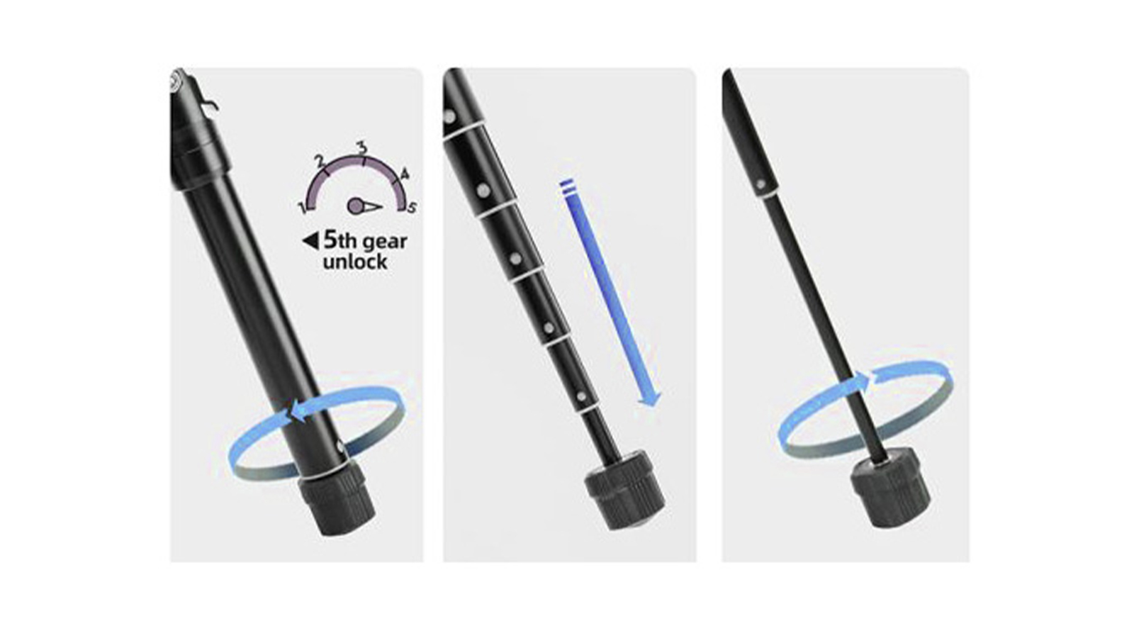 取り外した脚をセンターポールと組み合わせて一脚や自撮り棒として使用できる。