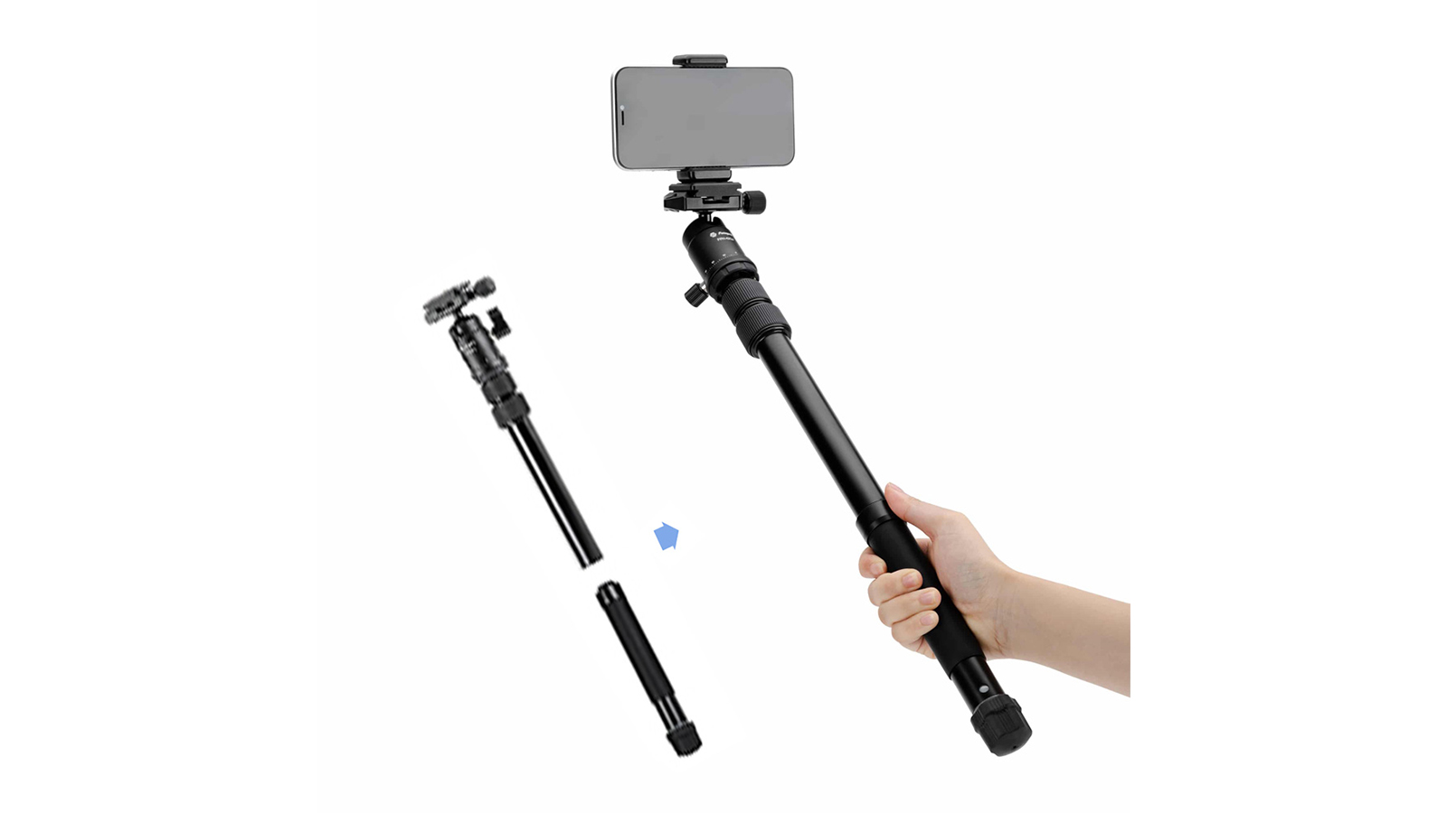 Fotopro FY-830は、コンパクトながら様々な機能を備えた三脚だ。脚をかんたんに取り外すことができ、分解してコンパクトに持ち運べる。脚部伸縮はインナーロック方式を採用し瞬時に展開可能、取り外した脚をセンターポールと組み合わせて一脚や自撮り棒としても使用できる。