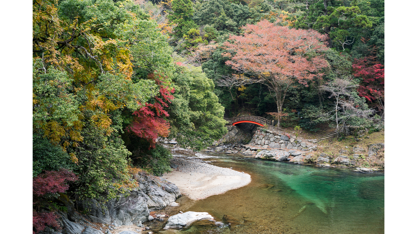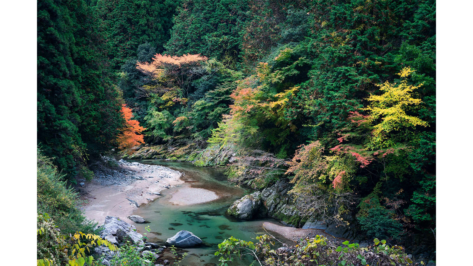紅葉に染まる山々と澄んだ清流に囲まれる秋は、東吉野村の美しい自然を満喫する絶好の季節。自然のなかを探索しながら、心地よい秋風と色彩豊かな風景を楽しめる。