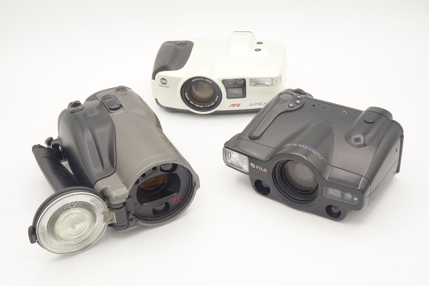 なお、先の通りAPEXというシリーズはブリッジカメラ専用のシリーズ名というわけではなく、同時期のミノルタ製コンパクトカメラのブランドネームである。他にAPEX70や90といった兄弟機があり、これらの機種は2倍のショートズームを搭載しており、いたって普通のコンパクトカメラの形をしていた。ちなみにAPEXという名前は頂点を意味し、どちらかと言えば高機能コンパクトカメラのシリーズと位置付けられていたようだ。これらの機種に共通した仕様としては当時のαシリーズでもお馴染みだったアイセンサーを搭載し、普及シリーズの70/90ではアイスタートAFを、上位モデルの105ではそれに加えてオートズームモードであるアドバンスプログラムズームを実装していた。