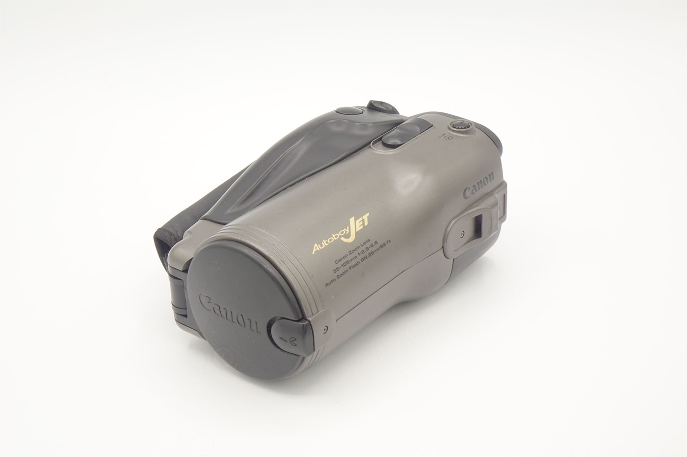そして、オートボーイJETはこれらのカメラに続くキヤノン三機種目のズームコンパクト機として発売されたモデルである。その特徴はなんと言ってもレンズそのものをカメラにしたかのような円筒形のフォルムであろう。既存ブリッジカメラのデザインが概ね「レンズ+グリップ等の機能を詰め込んだブロック」という構成だったのに対し、このオートボーイJETではほとんど円筒そのものになっていた。この円筒形フォルムを実現するために、フィルムはS字給装が採用されているが同じくS字給装で有名なオリンパスL-1よりもこちらの方が発売日は先行しており、またこちらに関してはパトローネもドロップイン式であった。