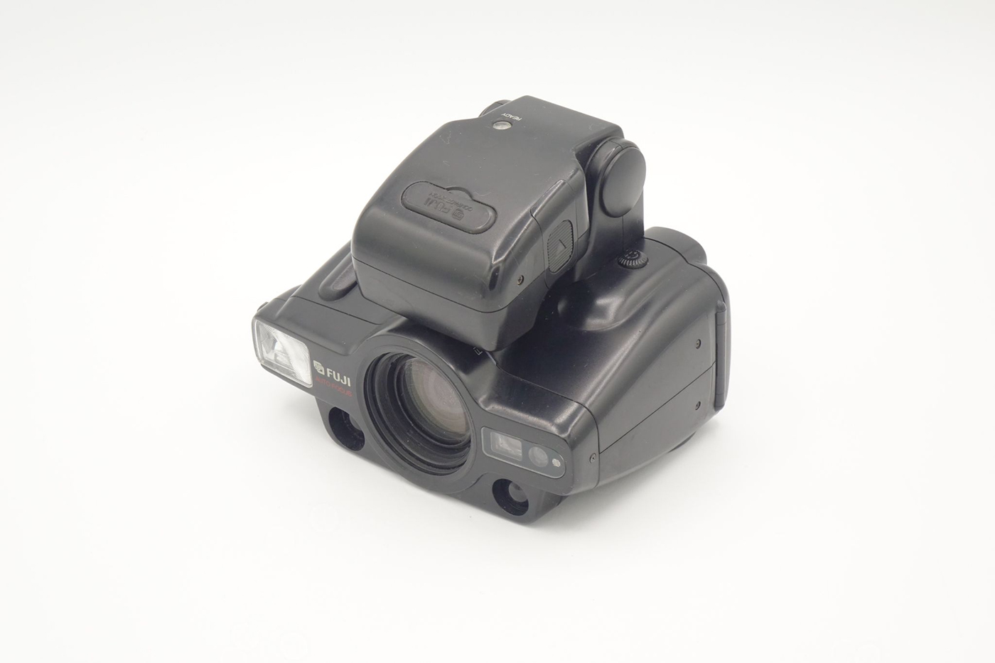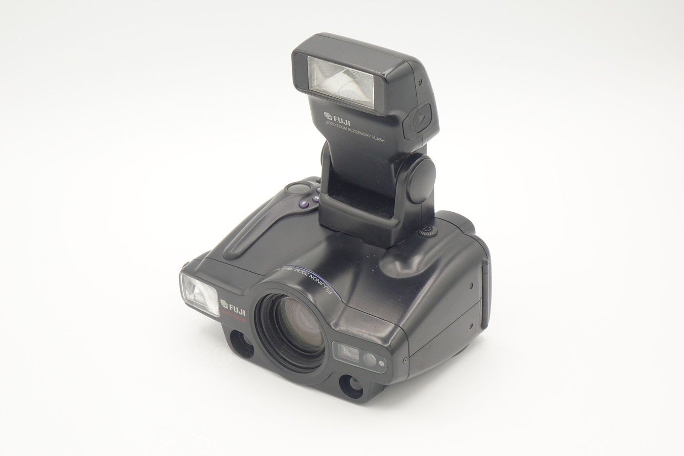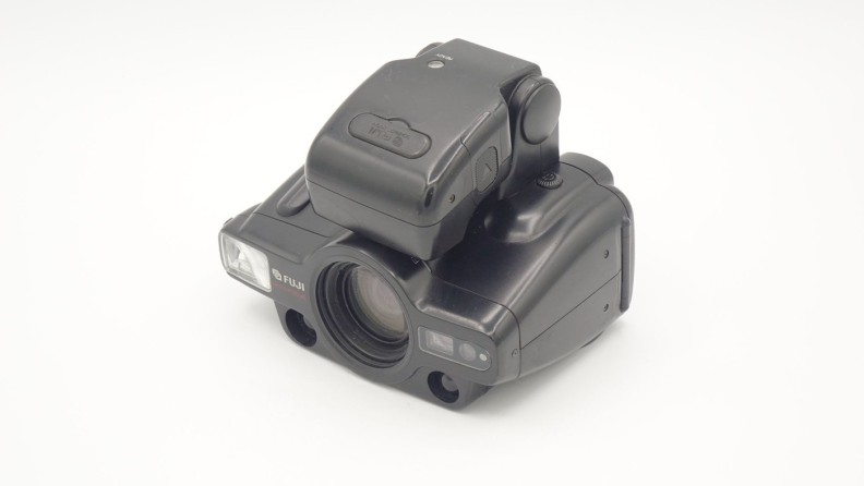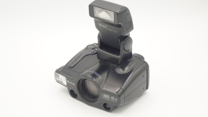 続くズームカルディア3000も外付けフラッシュ搭載という意味では同じだが、こちらは引き起こした時に一眼レフ用のクリップオンを思わせる姿に変わっていて、さらに巨大になっていた。使用しない時は折りたためるようになっていたとはいえその姿は威圧感たっぷりである。ただ、やはり可搬性は犠牲になってしまうのでこれ以降内蔵フラッシュの他に巨大な外付けフラッシュが付属する機種というのはほとんど生まれていない。そういう意味ではフラッシュを付けることが理論としては正しいとしても、ユーザーはついてこなかったと言えるのかもしれない。