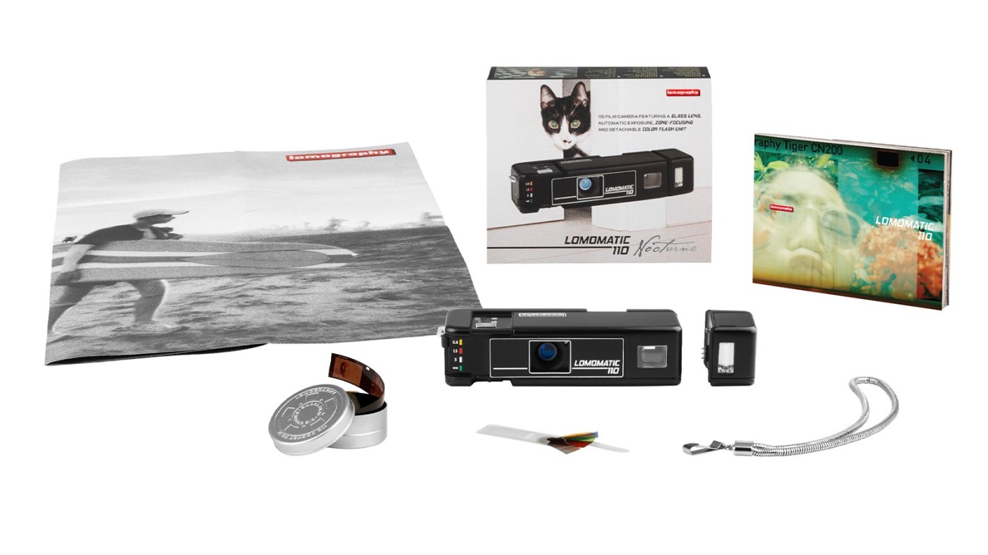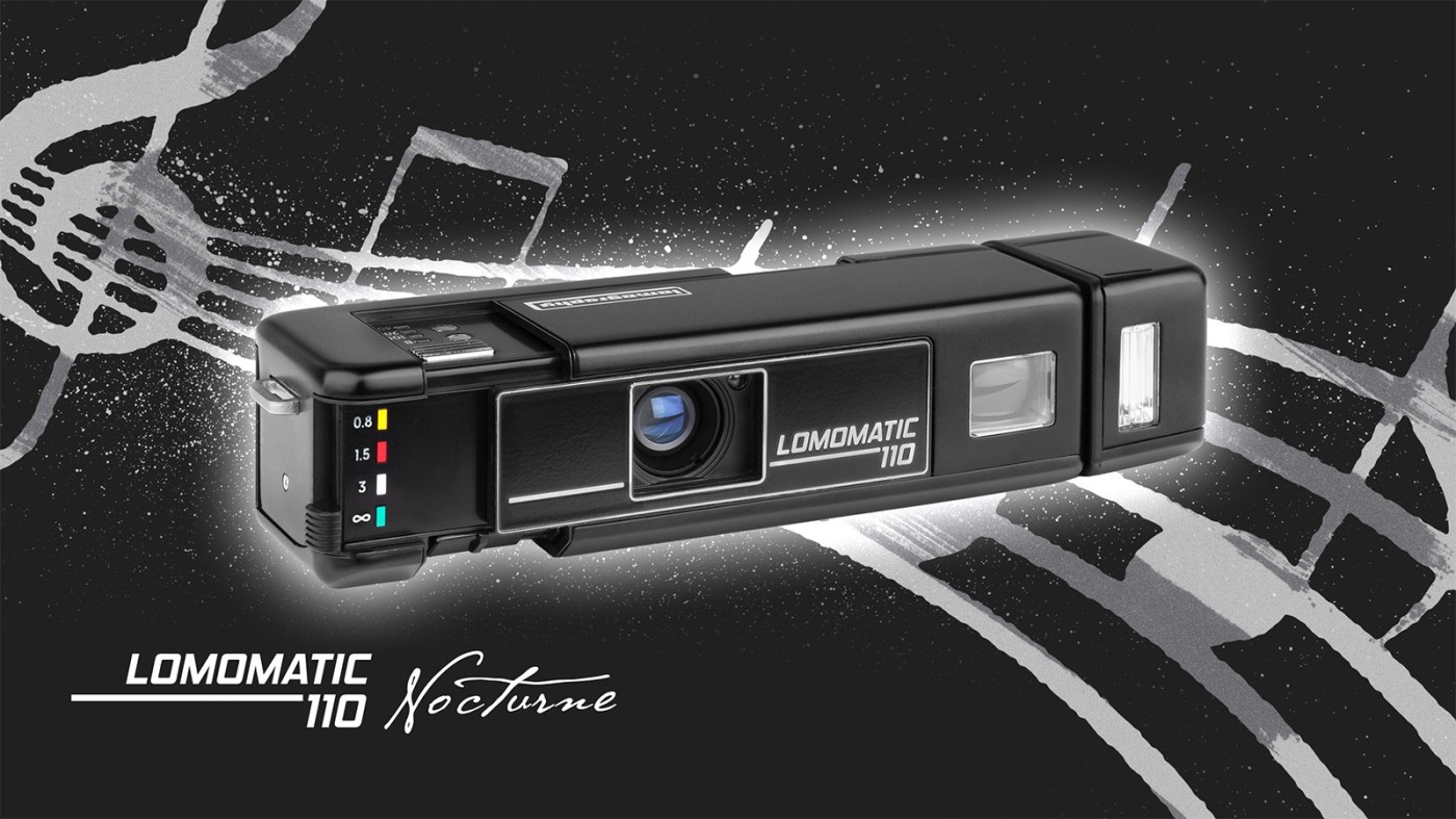 ロモグラフィーから、ガラスレンズと自動露出機能を搭載した110カメラ「Lomomatic 110」にオールブラックのLomomatic 110 Nocturne Editionが登場。販売価格は21,980円(税込)。