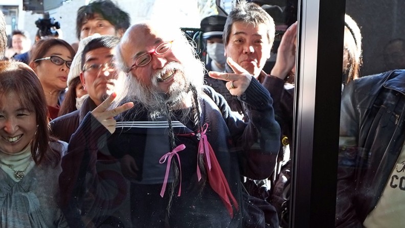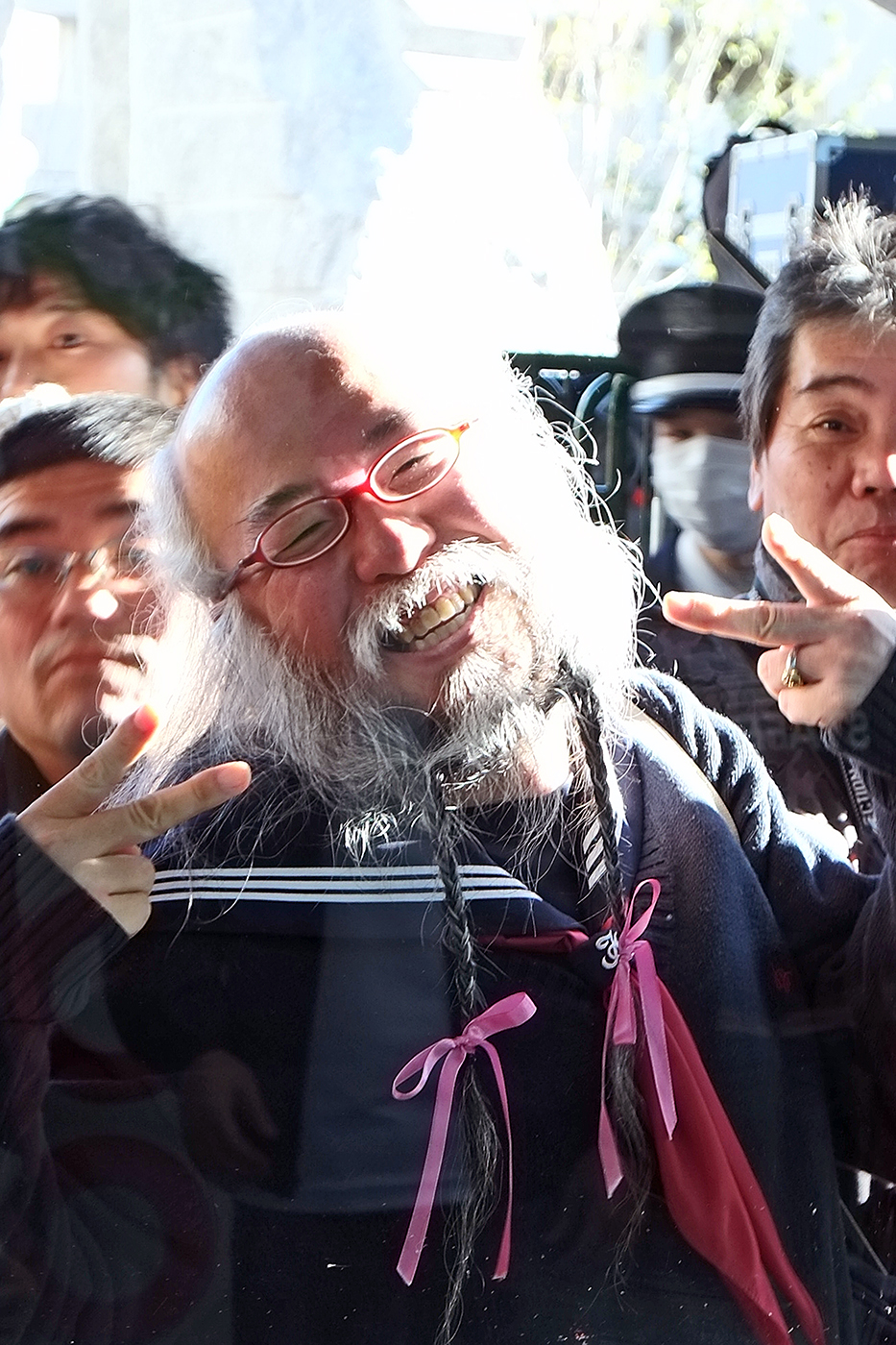 このおじさん、小林秀章さんと言ってかなり有名な方で、2011年からセーラー服を身にまとうようになったというから、この写真を撮った1年ほど前ということになる。アップで(⑩)。