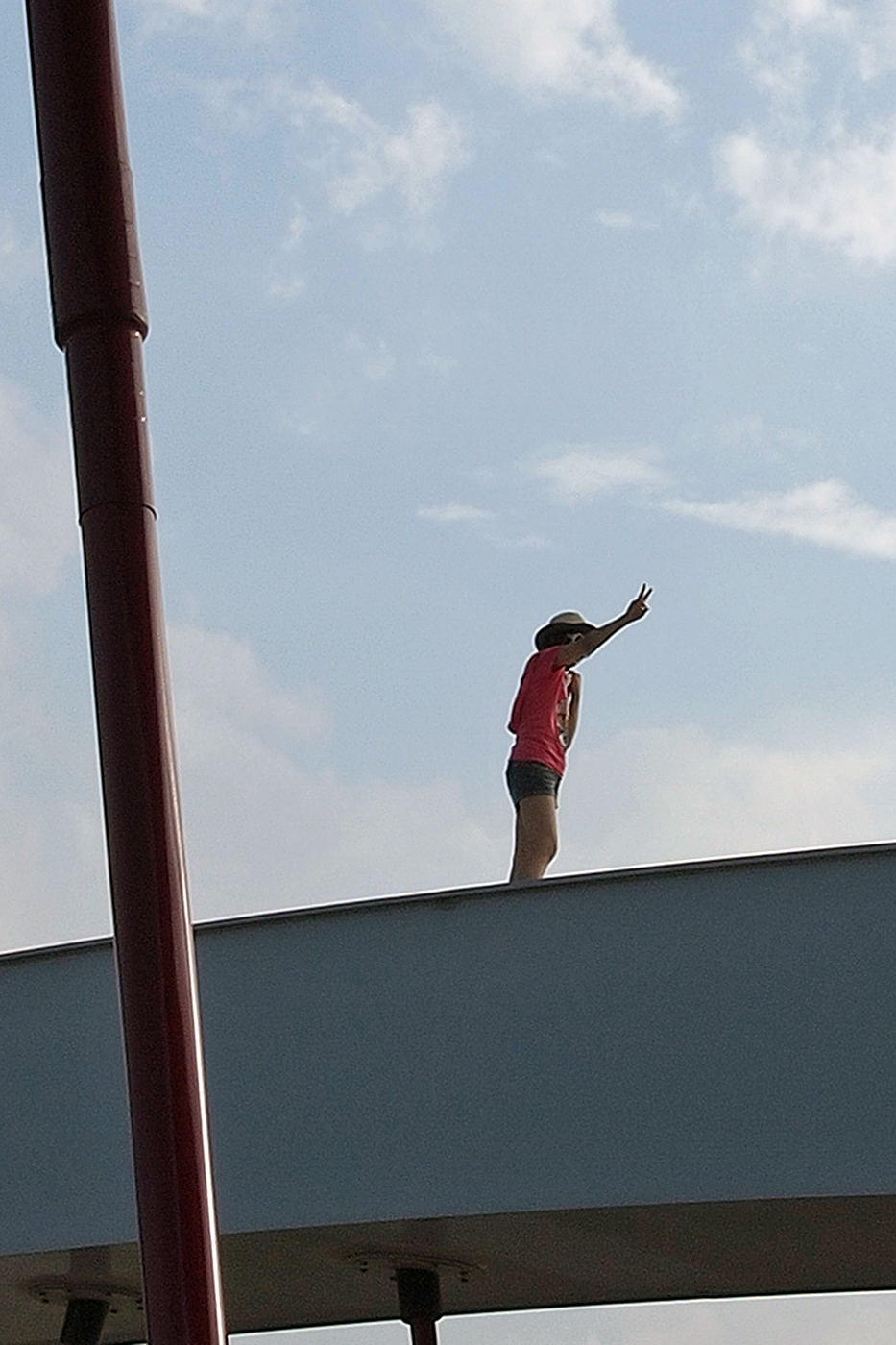 ねっ女の子がアーチを歩いているでしょ? さらにアップをするとピースサインをしている(⑦)。