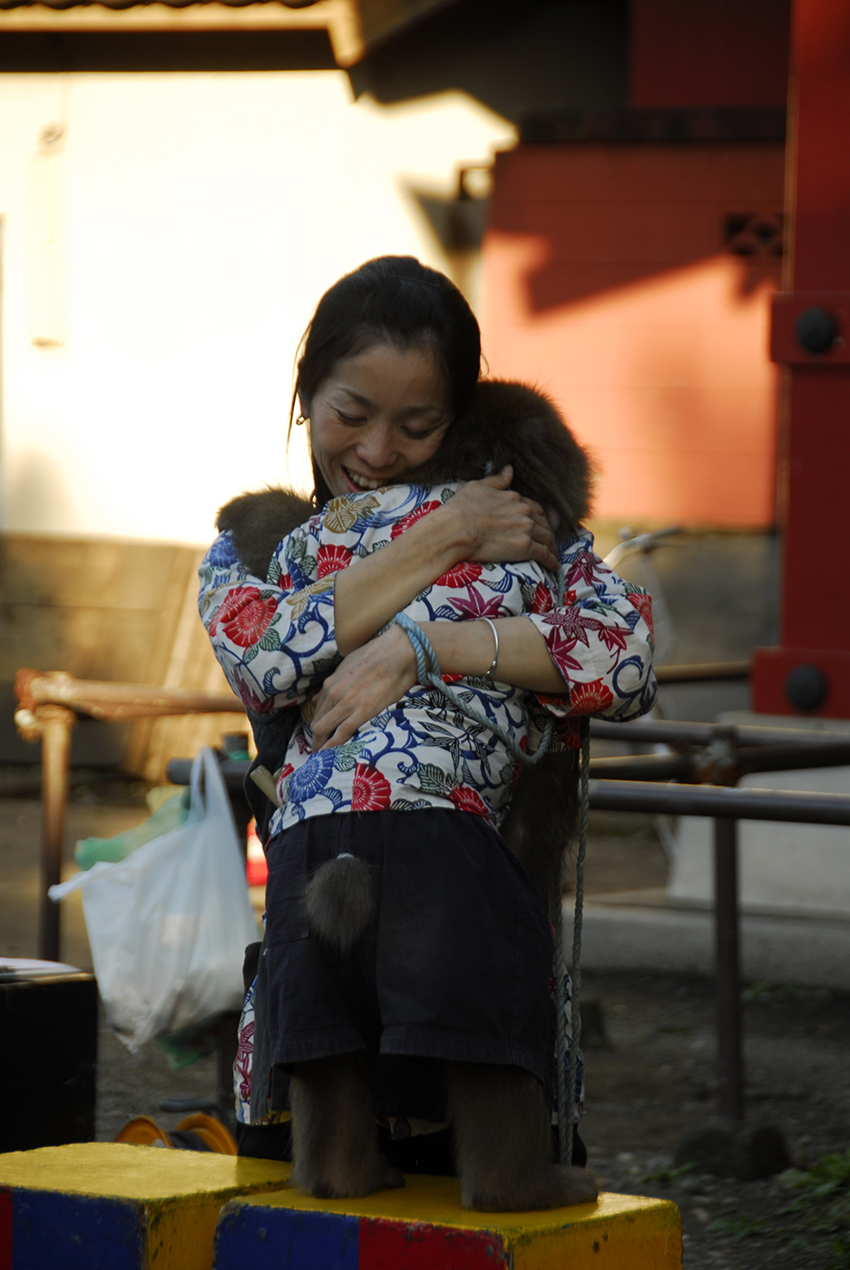 最後は猿回しの猿とコンビを組むお姉さんとの抱擁(⑭)。
