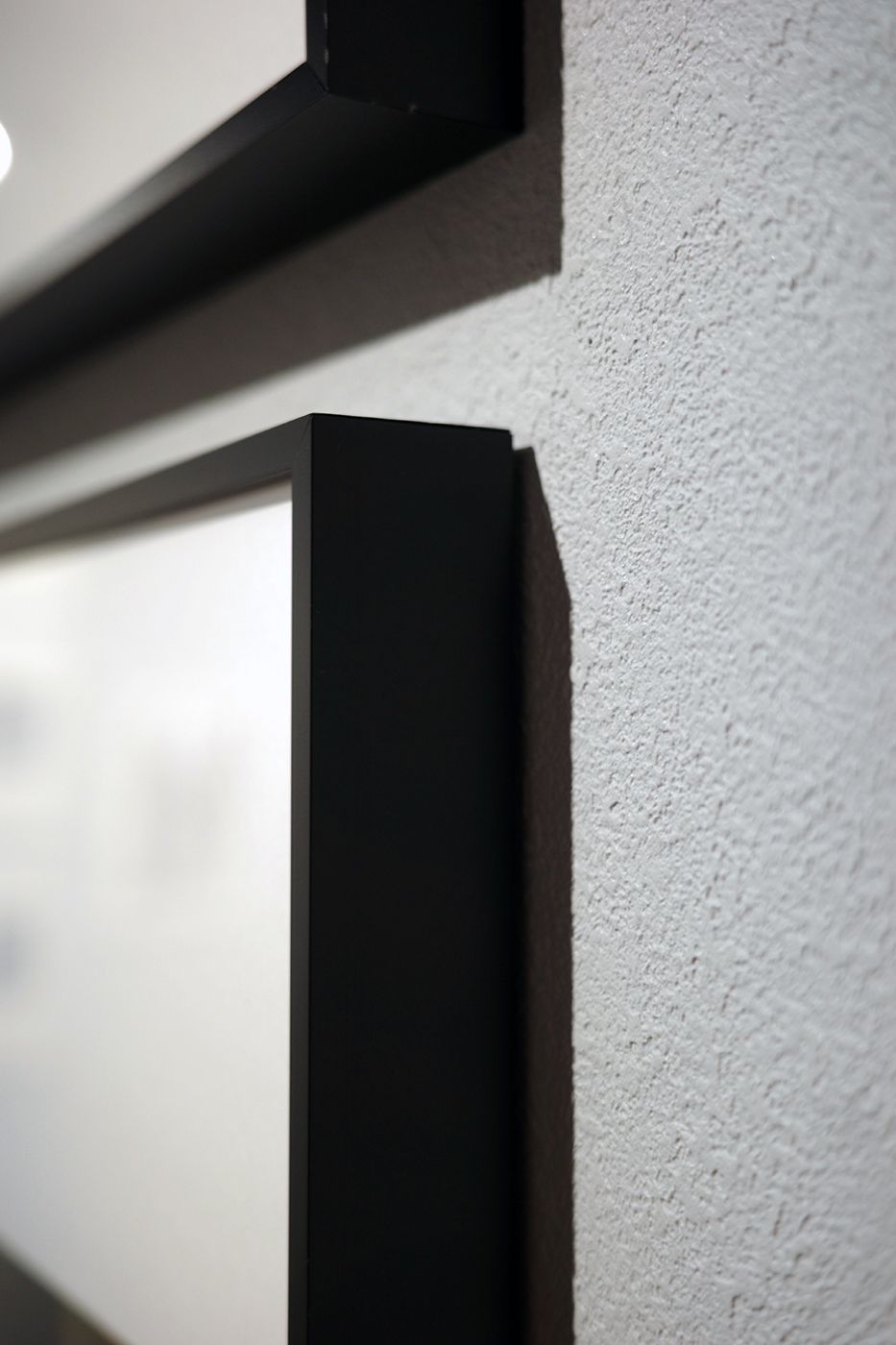 例えばエルマー35展だと、溝がきってある「極シリーズ」という額が推奨されています。「極シリーズ」以外でも、釘を引っかけられるところがあるタイプの額なら大丈夫です。たまにあるそうですが、紐も、溝も無い、裏がつるっとした特殊タイプのものは、設営の人たちも困ってしまうそう。