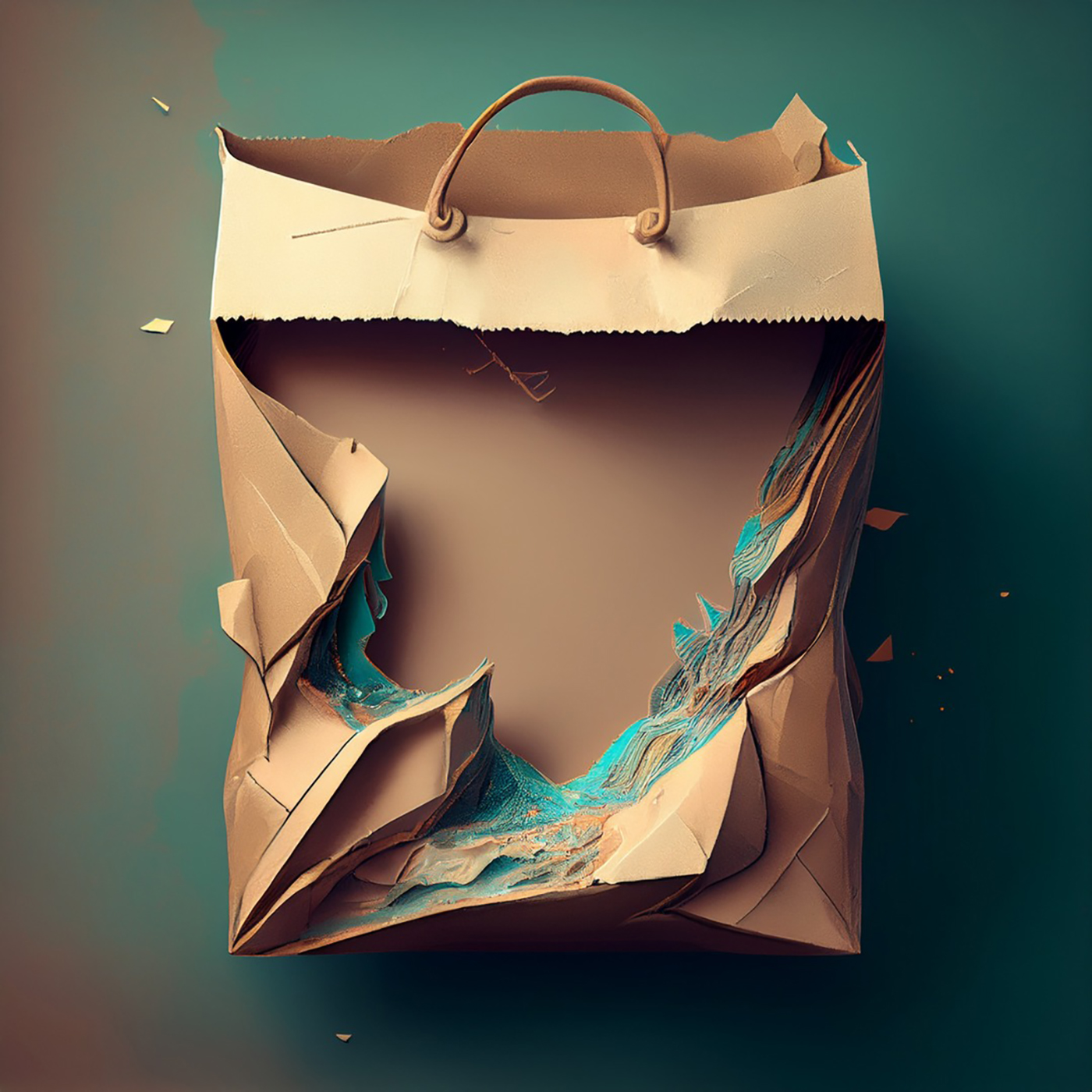 こんな梱包の人はまずいませんが、こんな風にぼろぼろで再生不可の梱包は困る、という生成AI画像です。
