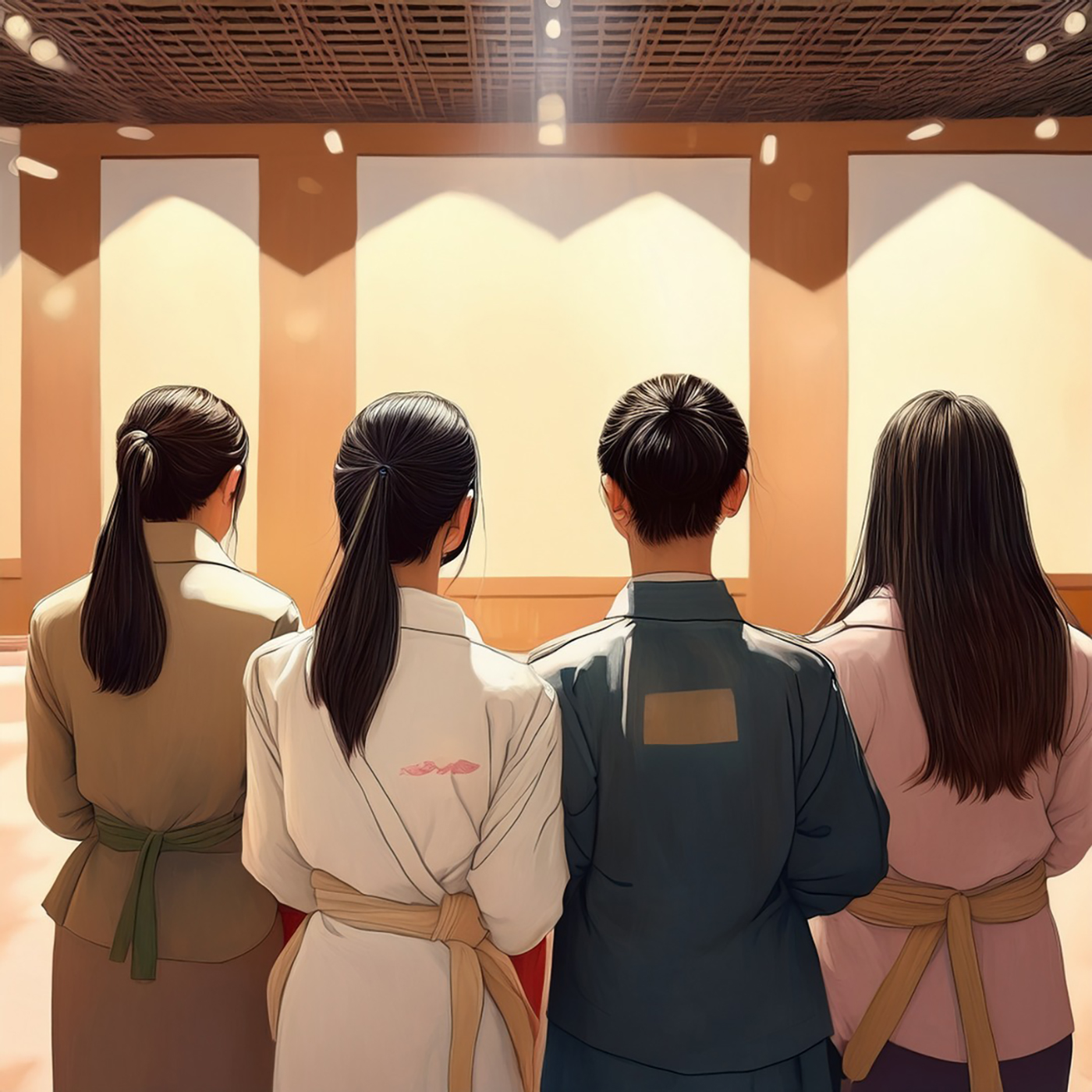 せっかく写真展を見に来たのに、出展者ばかりが盛り上がり、残念な気持ちで帰ることになるAI画像です。