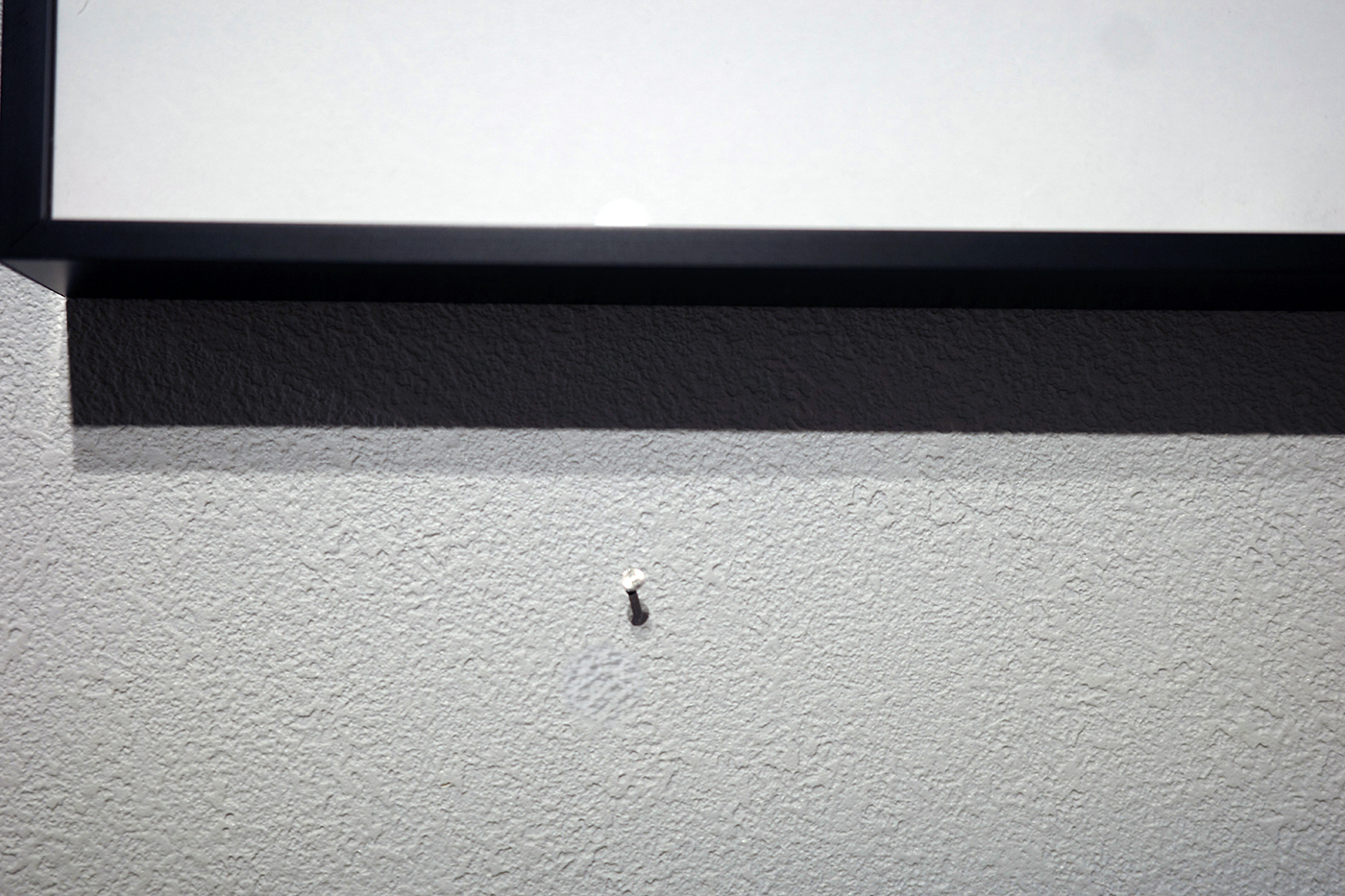 写真展会場により違いますが、多くのところでは、壁にくぎを打って額をひっかけます。(撤収の時に、この穴は塞いで綺麗にしてお返しします)