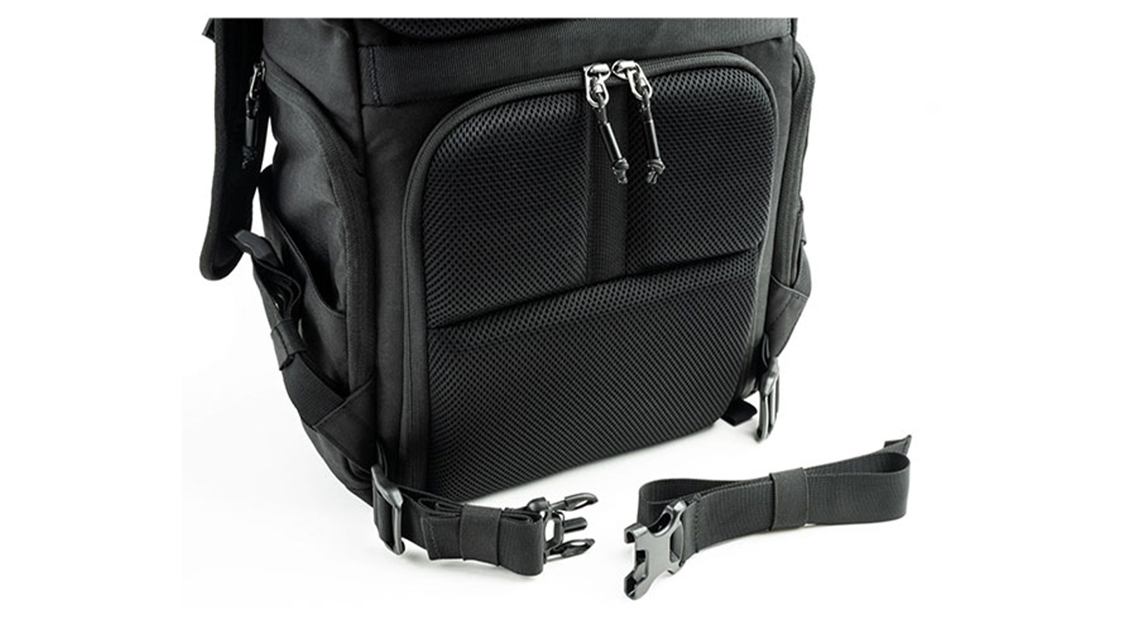 ショルダーストラップは、デイジーチェーンに加えてカメラクリップ用アタッチメントを装備。チェストストラップはマグネット式でスムーズな着脱が可能で、体型に合わせて取り付け位置を変えられる。ウエストストラップはフィット感を向上させたいときに便利で、不要な際は取り外しができる。