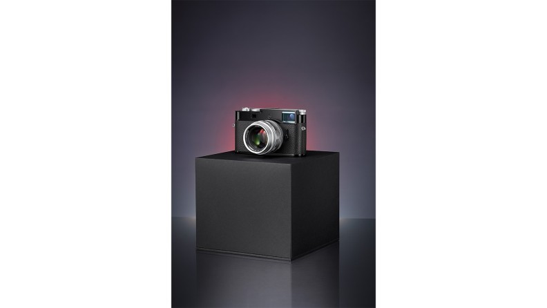 レザー外装に施されたスタイリッシュなブラックのカウハイドレザー独特の質感は、初期のM型カメラに採用されていたことで知られるヴァルカナイトを彷彿させるエレガントな佇まい。その他、「ライカI」誕生100周年記念を示す「100」のロゴが入ったブラッククローム仕上げのホットシューカバー、本体正面には「Leica」の赤いロゴの代わりにブラックのマイナスねじ、「001/100」から「100/100」までのシリアルナンバー、同梱の製品証明書など、ユニークな特別限定モデルであることを印象づける要素が随所にちりばめられている。