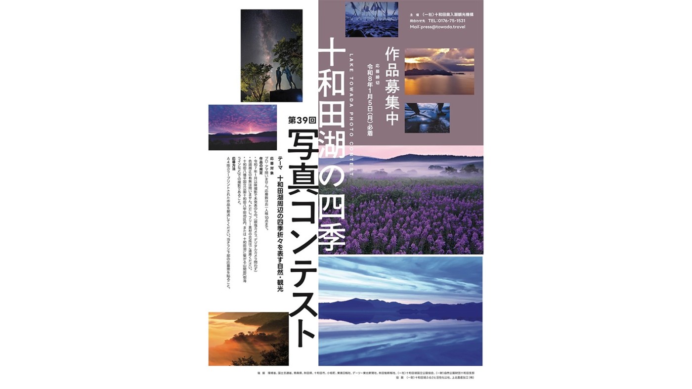 一般社団法人十和田奥入瀬観光機構(理事長:岩間惠美郎)は、「十和田湖周辺の四季折々を表す自然・観光」をテーマとして、「第39回十和田湖の四季写真コンテスト」を開催する。