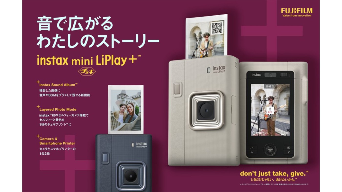 「mini LiPlay+」は、instax™“チェキ”初搭載のセルフィーカメラを使用した「Layered Photo Mode」で、自撮り画像と風景などの画像を重ねて一枚のチェキプリント™にでき、新機能「instax Sound Album™」で、画像と一緒に撮影時の音を聞きながら思い出を鮮明に振り返ることができる。多くの思い出を音と一緒にチェキプリント™に収めてほしいという想いを「音で広がるわたしのストーリー」というメッセージに込めた。グローバルには「Sounds like adventure」というメッセージで訴求していく。オンライン・ソーシャルメディア・店頭などで「mini LiPlay+」の魅力を多くの方々に伝えていく。