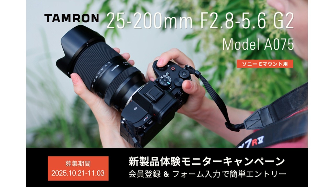 「高倍率ズームレンズのパイオニア」として進化を続けてきたタムロンが、創業75周年を記念して送り出す「25-200mm F/2.8-5.6 Di III VXD G2 (Model A075)」ソニー Eマウント用の発売を記念した、新製品体験モニターキャンペーンが実施される。
