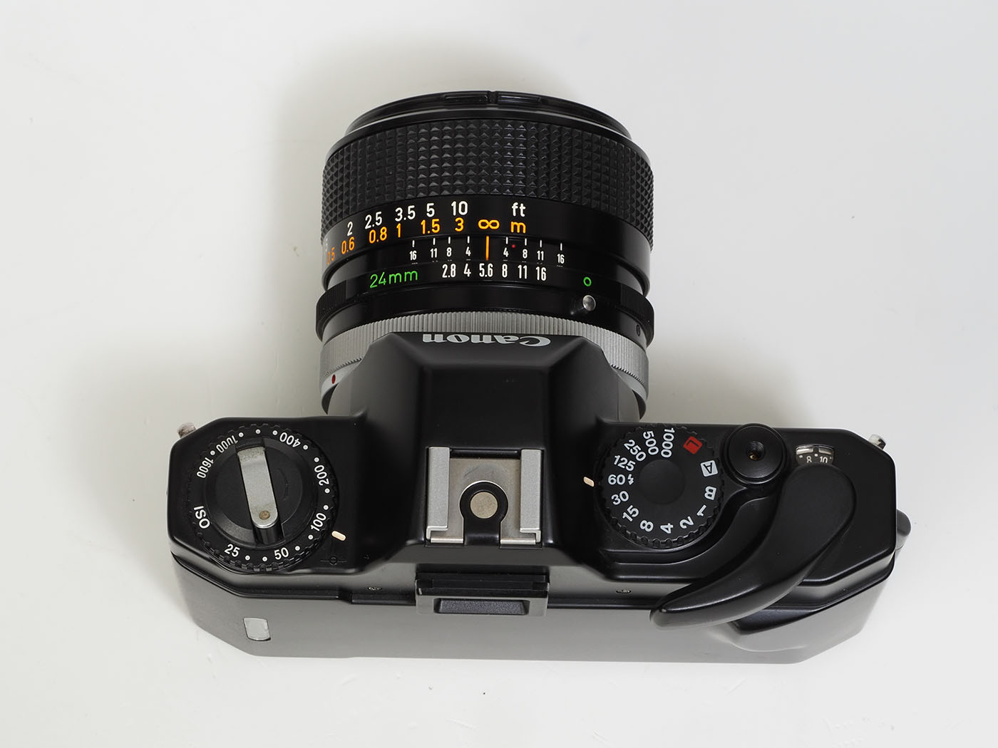 露出制御は絞り優先AEとマニュアルですね。おいおいーキヤノンのAEの基本姿勢はどうしたんだーとか、前にAV-1の時に書きましたっけ。すでに筆者自身が忘れましたけどね。でも廉価に作るためにはシャッタースピード優先AEよりも絞優先AEが安く済むのかもしれません。