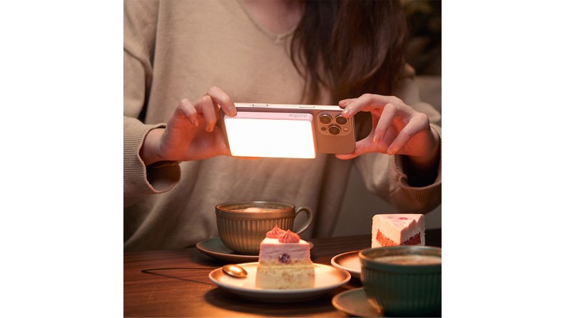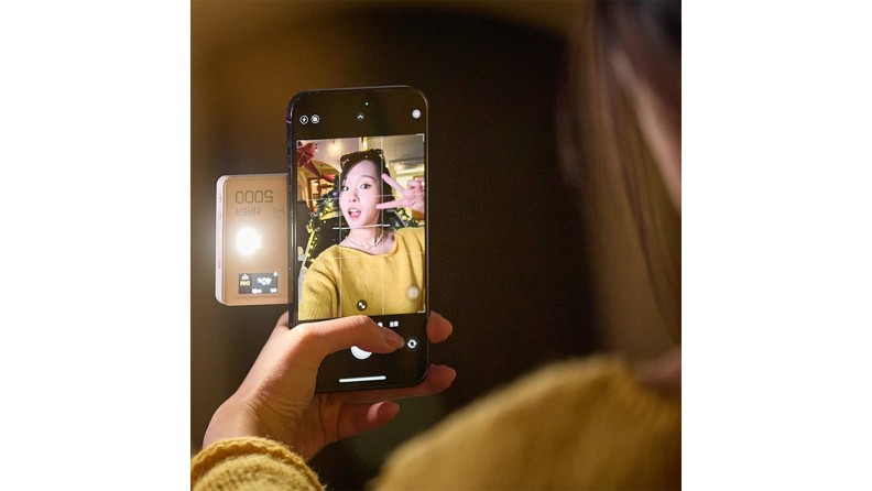 磁気アタッチメントと同じ面にセルフィー用ライトが内蔵されているため、磁気対応のスマートフォンに取り付けた状態でカメラを起動すれば、簡単に上質なセルフィーを撮ることができる。