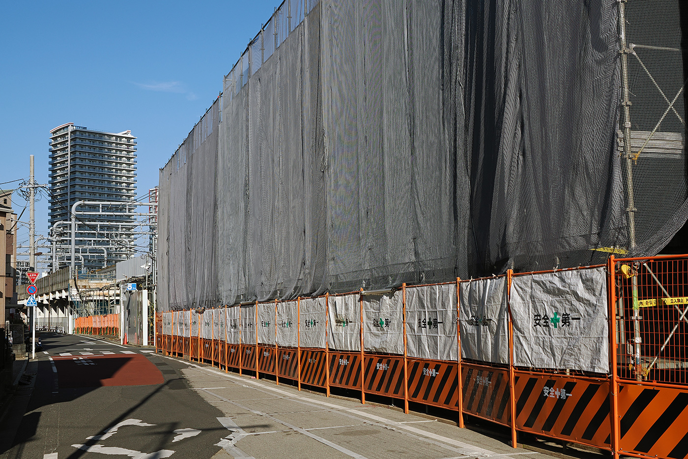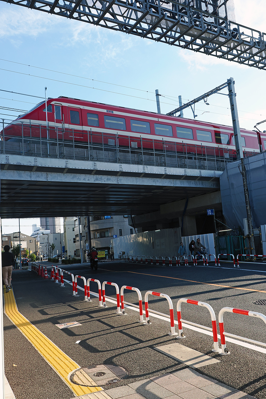 ちょっと歩くと、まだ高架線は工事中であった(④)。