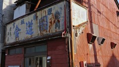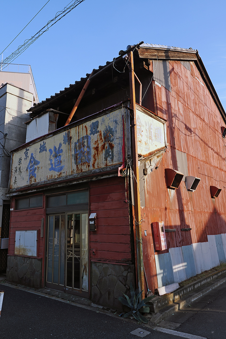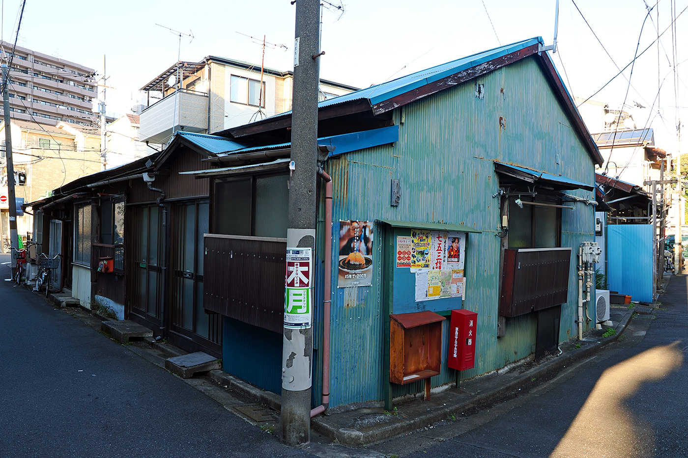 京島界隈、ちょっと路地に入れば、こうしたブルーのトタンに囲まれている住宅が多くあったが、ここ10年でほとんどが姿を消してしまった。今やほんの数件しか残っていない(⑭)。
