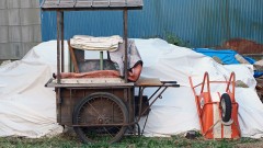 お次は空き地に置かれている屋台なのだが、なんのために放置されているのであろう? またなんの屋台だったのだろうか?妙に気になった(⑩)。