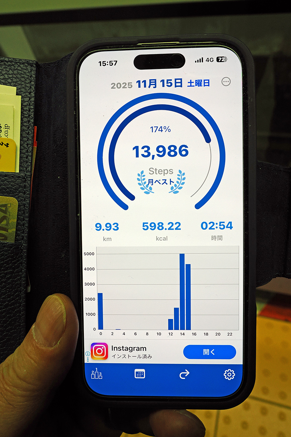 押上駅から出発して京島、文花と歩き再び押上駅まで戻った。結構歩いたな、と歩数計を見るとあらら……(⑲)。