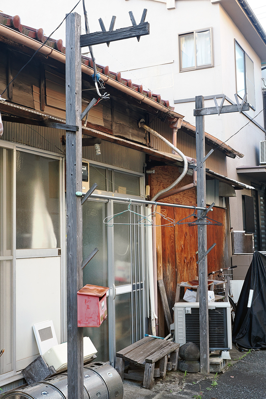 そしてこのあたりのお宅は庭を持たないので、路地などに植木鉢を置いている。また洗濯物の物干し台はこうして家の前にあるのが普通であった(⑮⑯)。