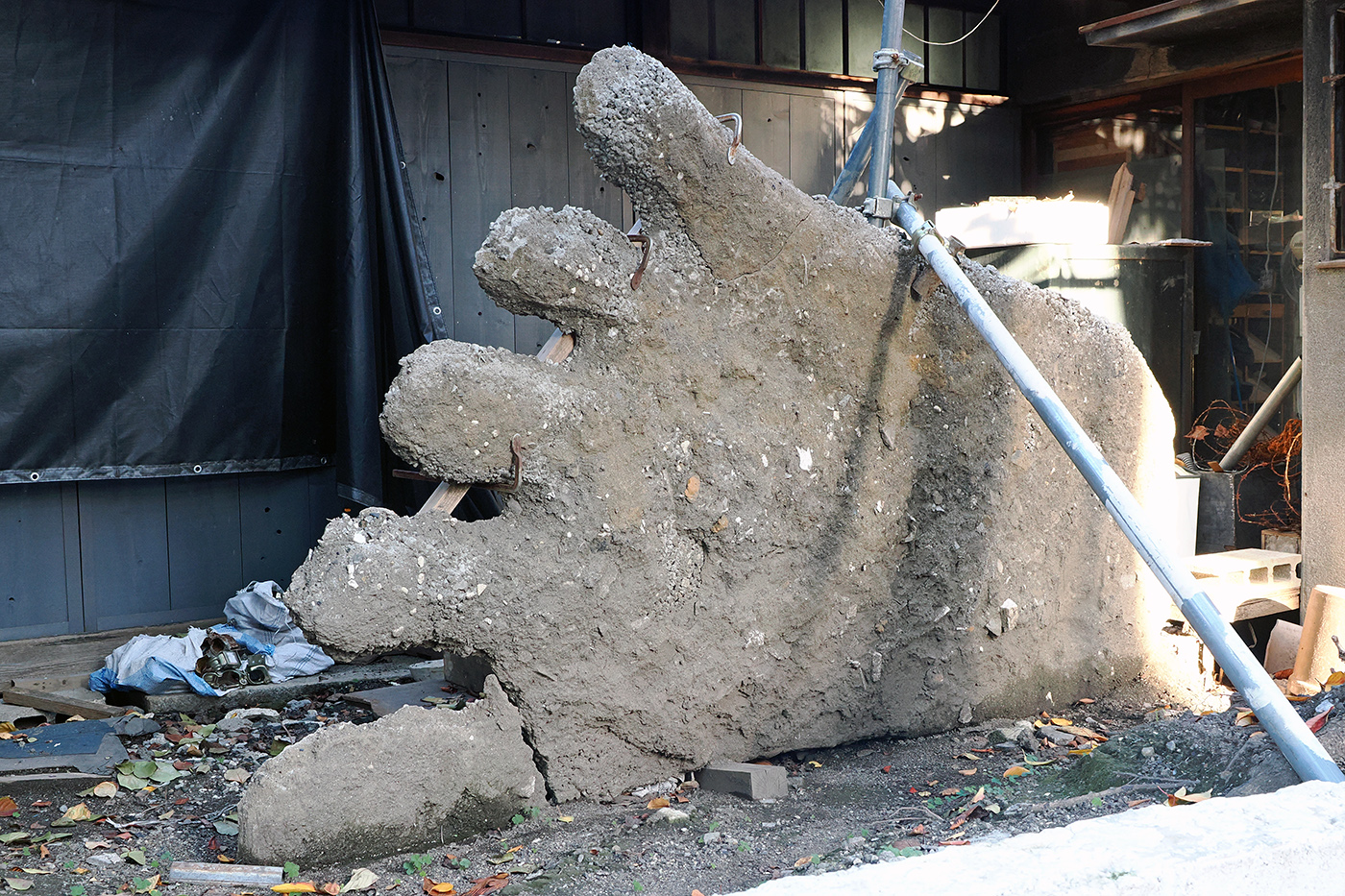 その道を挟んだ逆側には、なんだか分からないが、大きな手の形をしたものが置かれている。とてもオブジェには見えないし、芸術性はまるで感じられない(⑪)。