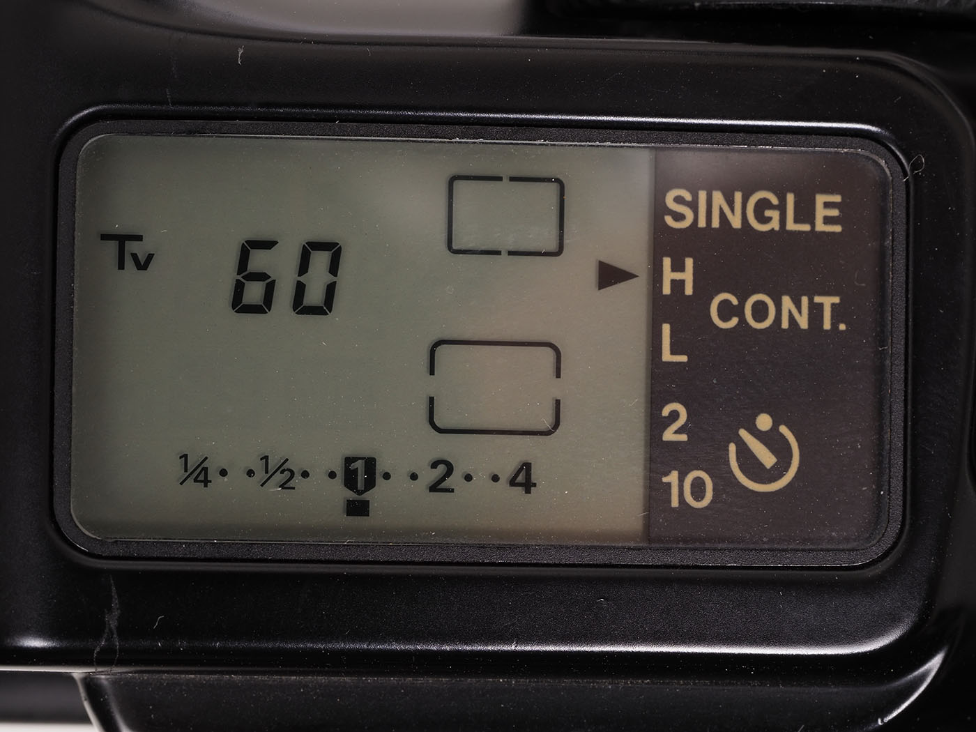 カメラ上部にあるLCDです。普通に見やすいので問題なく。30年経てもあまり変化はないところを見ると、高価なデバイスを使用したのかな。
