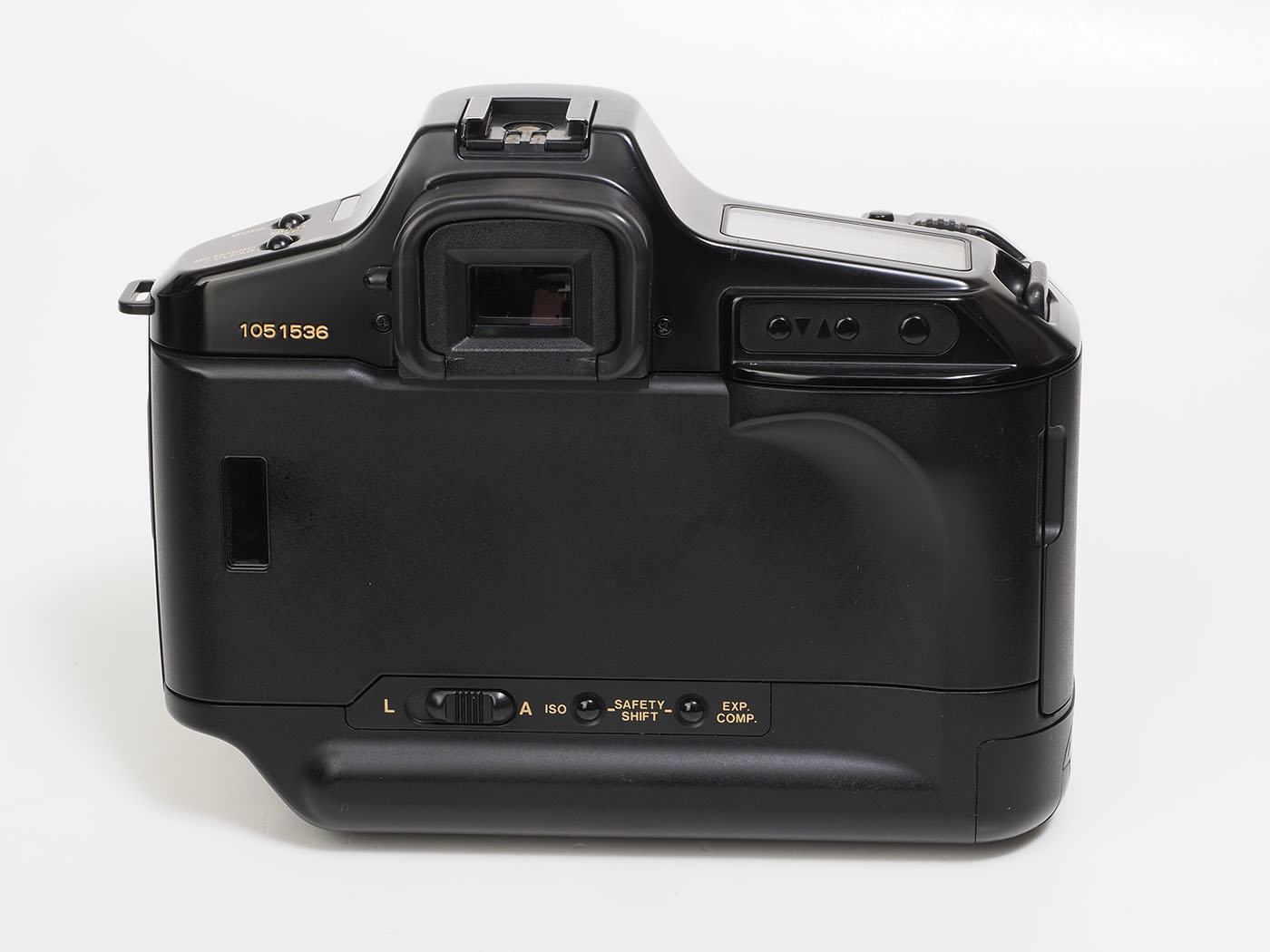 全体のフォルムや一部の機能がEOSの初号機と同様のところもあったりして、いやAFのないEOSみたいな感じがしてしまうわけであります。もっとも世の中はミノルタαショックのころですからねえ、MFのままでも世間を脅かす必要があったんだろうなあ。