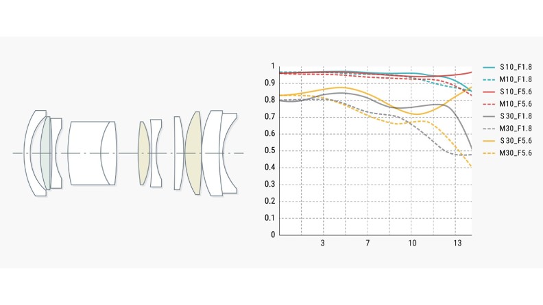レンズ重量はわずか約225g。明るいF1.8の開放値により、室内や夜景撮影などの暗いシーンでもノイズの発生を抑え被写体ブレや手ブレを軽減する。また、被写体を美しく際立たせるボケを活かした撮影も可能。