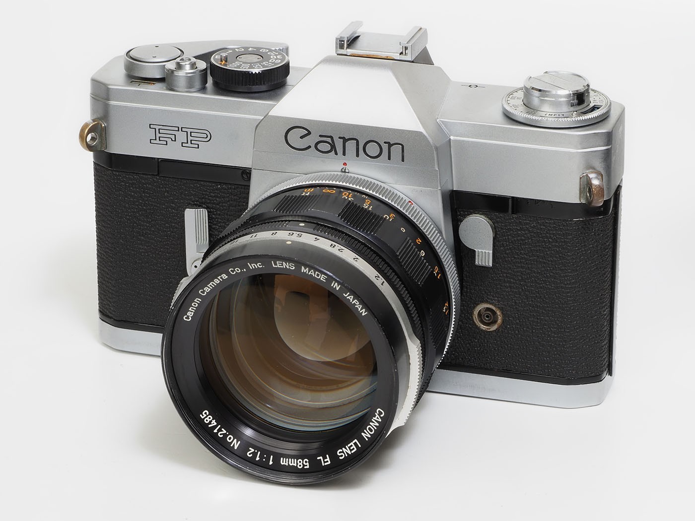 先週紹介しました、キヤノンFXの内蔵メーターを省いた機種がキヤノンFPです。いや、でも細部のディテールが異なるので、普及機と呼ぶのも少し違うような。