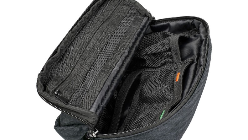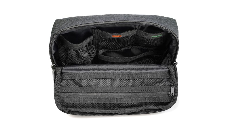 内部には細かい仕切りやネット、ゴムが配置されており、収納するものに合わせて自由にレイアウトを決めることができる。