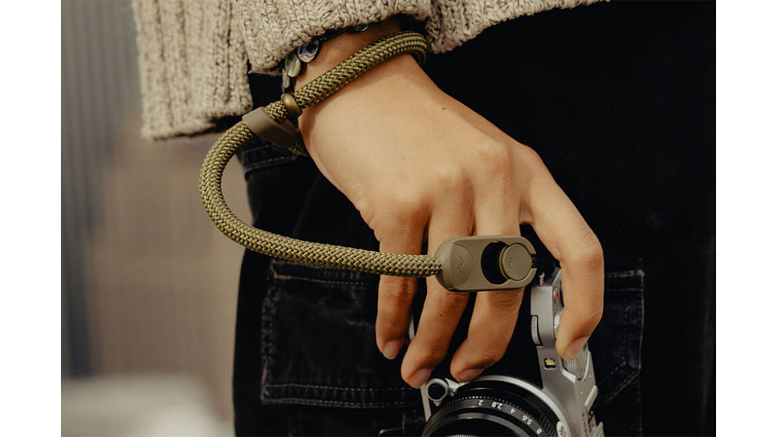 独自開発のバスケット編みされたナイロン・ポリエステル製のロープは、カメラの持ち運び時に求められる、強度・快適性・しなやかな伸縮性のバランスを最適化。心地よい装着感を実現している。