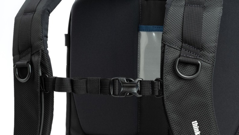 ショルダーストラップにはDリングがあり、アクセサリーの取り付けが可能。