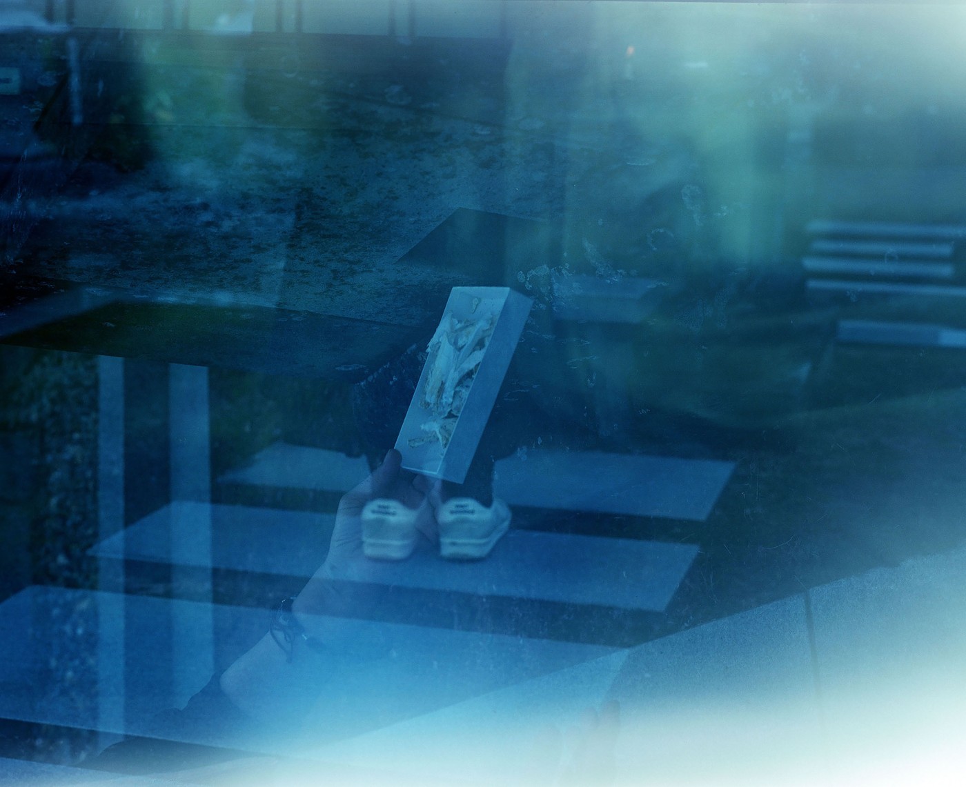 今回発表される新作「Primitive Dialogue」は、福井に拠点を移した2017年ごろから現在まで、6×7の中判フィルムを用いてカラーとモノクロームで撮影を続けているシリーズ。鈴木は、東京で時間に追われるように制作をする日々から離れて福井に拠点を移した後、姉と祖母という身近な人の死を経験した。また、2018年から県内の遺跡の発掘現場から出土された文化財遺物の修復に関わる仕事に就く。身の回りで起こった近しい肉体からの魂の離脱、また、悠久の時を経て眼前に現れた事物の表象を扱う日常の中で、言葉になる前の記憶や兆しを写真で捉えようとした。