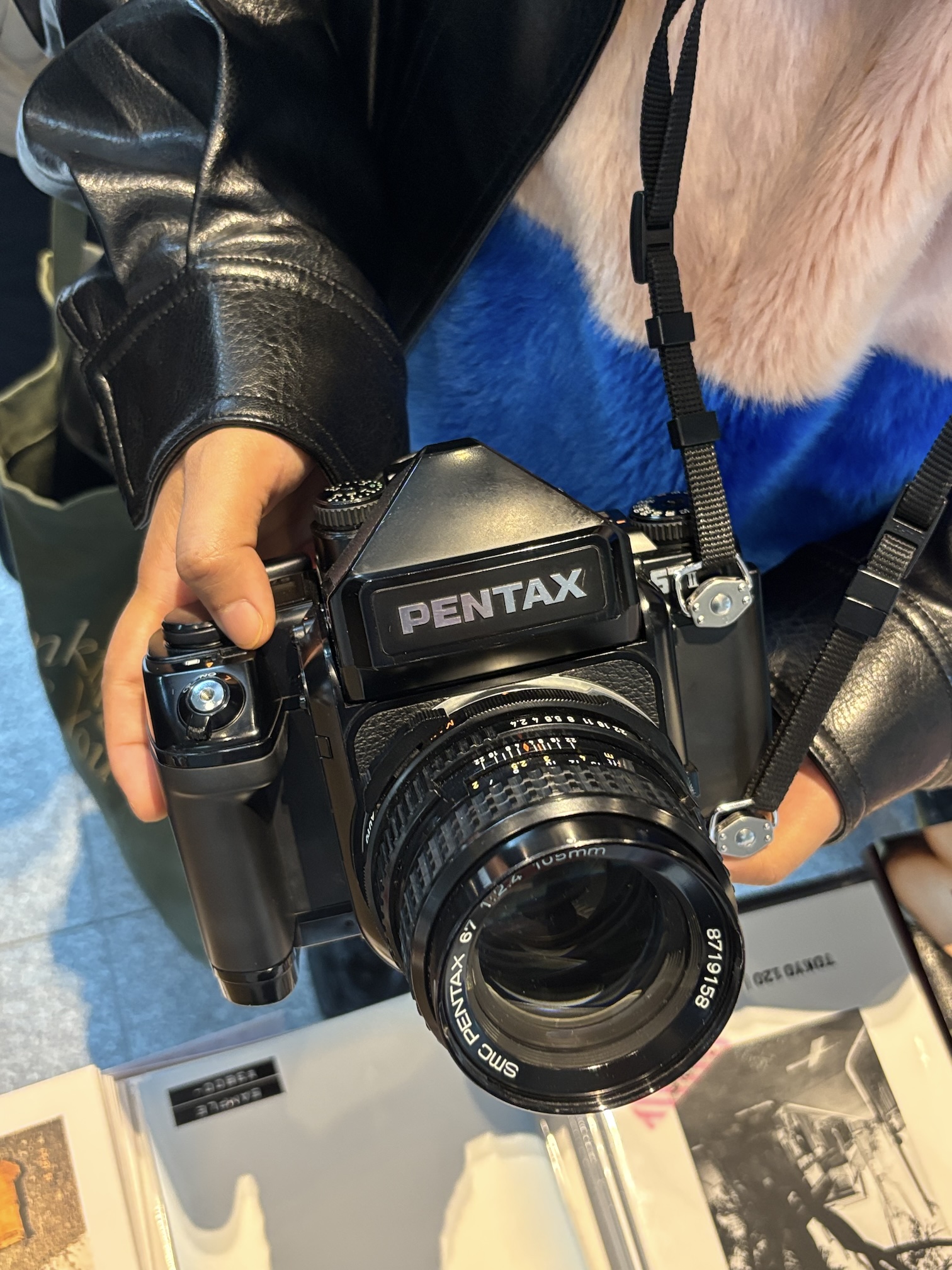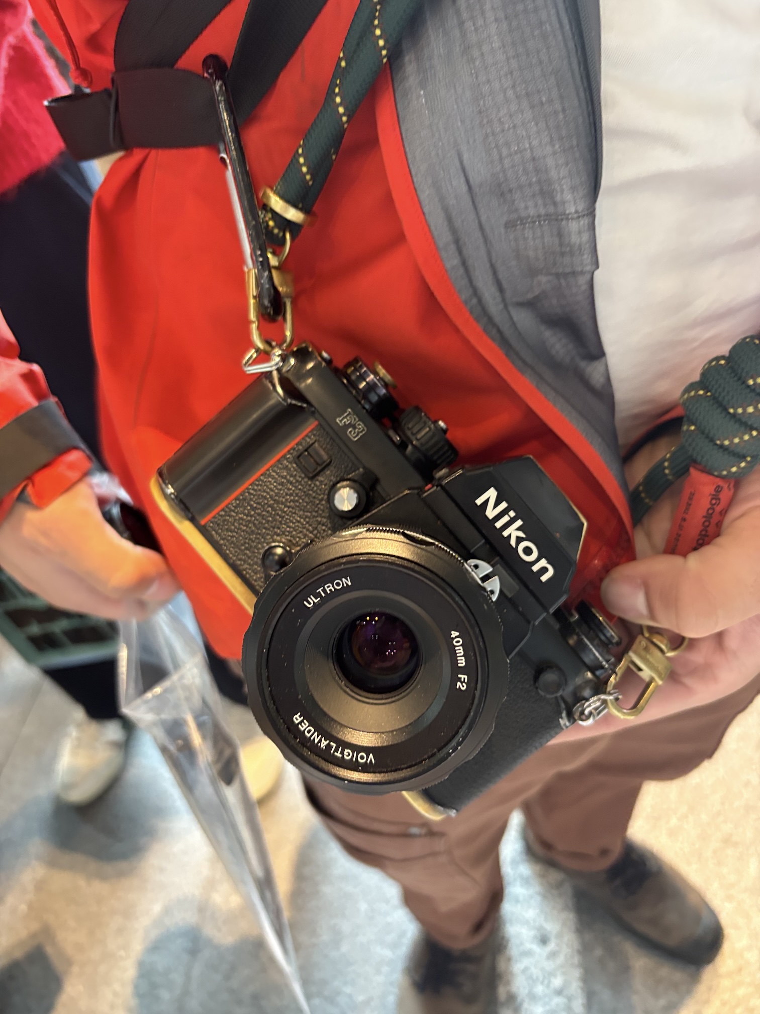 この若い女性には心から敬意を表したい。こんな巨大なカメラを、混雑した会場で持ち歩くのは決して楽ではないからです。それでも——なんてカメラなのでしょう。肩に大きなカメラを担いで世界に出ていく人を見るのが好きだし、自分もそうありたい。素晴らしく、そして圧倒的に頼もしい写真機材です。