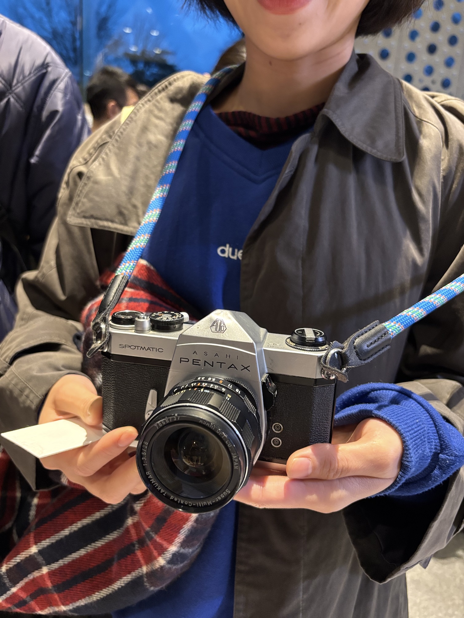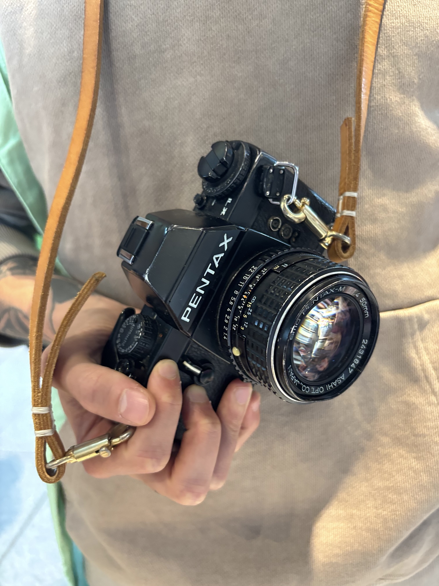 では、もう一台ペンタックス!使い込まれた風合いが魅力のスポットマチックです。今の持ち主は若い女性。何十年も人を楽しませ、写真を生み出し続けられる——そんなカメラであることが、なんとも嬉しいじゃないですか。