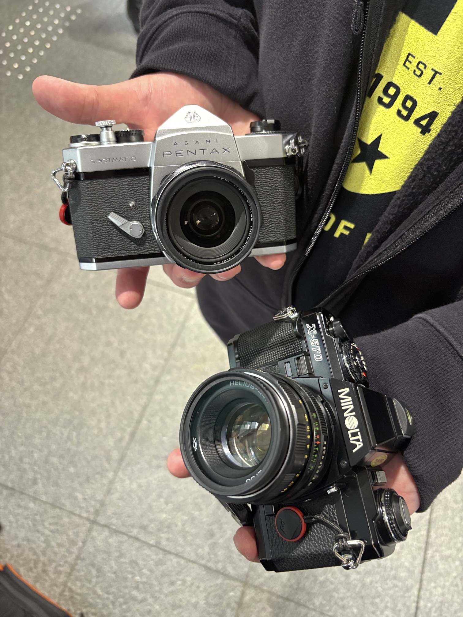Another camera pairing- this photographer from America had an ever-classic Spotmatic with a Minolta X-570. The Helios-44M lens is attached by a Minolta SR to M42 adapter. A solid, capable set of cameras!