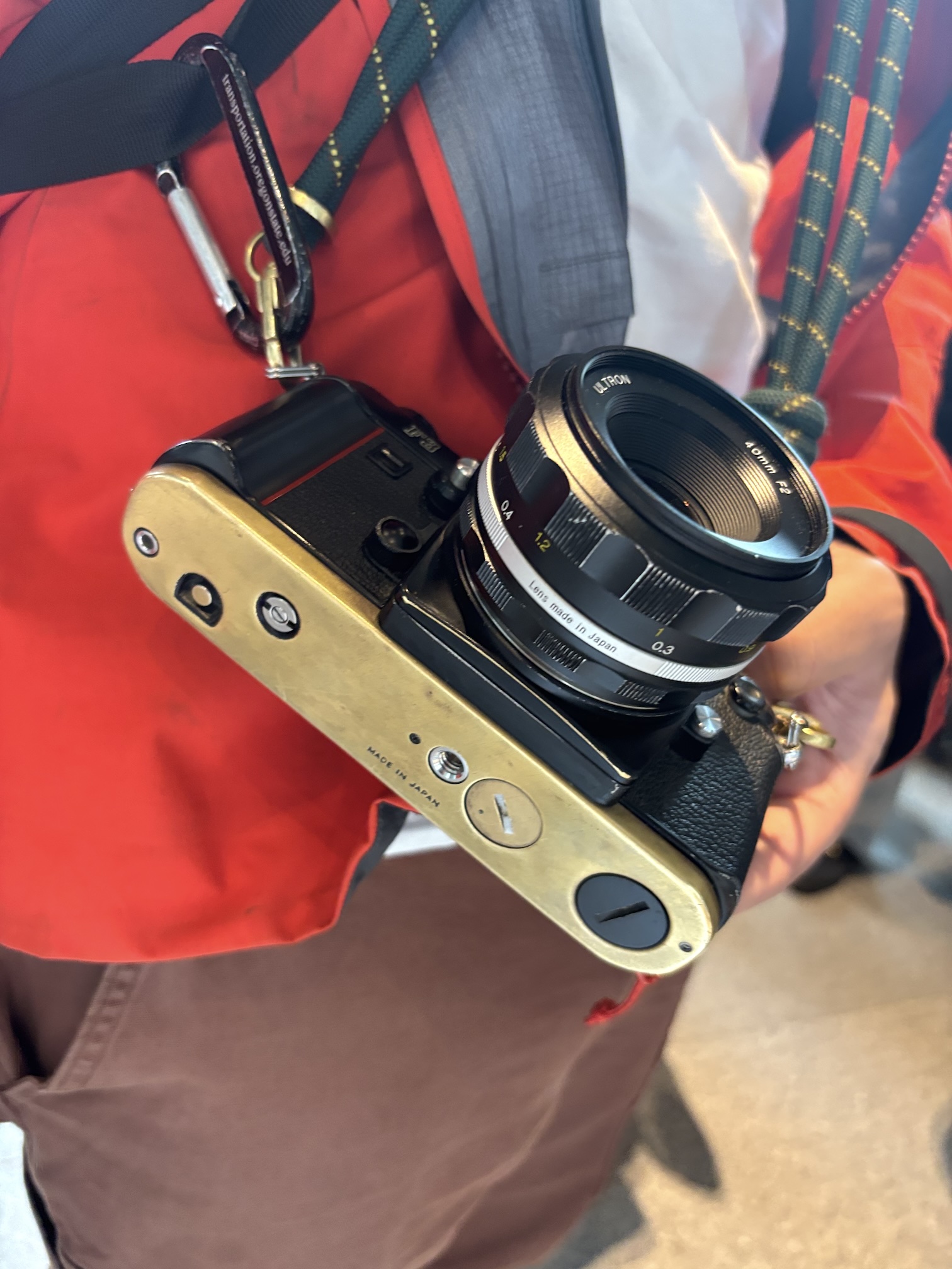 A young Swiss photographer had this chic LX over his shoulder- perfect bit of Pentax glass for the lens, too. This is a camera I’ve never owned- but always sorely wanted. Maybe it’s not too late. Over the years people have told me that Tokyo Camera Style has inspired them (or infected them) with a desire for cameras they’ve seen on it- - looks like I’m not immune to the magic, myself…