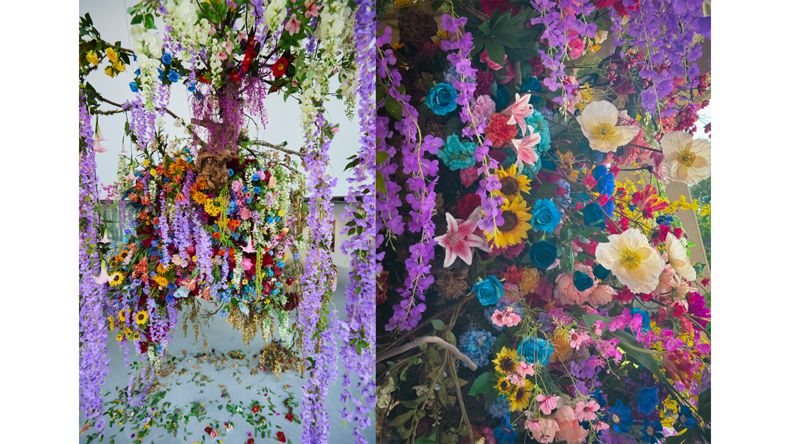 咲き誇る花々と、落ち、萎れ、種へと変わっていく花々という、対照的な二つの表情を茶室の内部に共存させることで、いのちの循環に潜む静かな輝きを見出すための空間アートインスタレーション。華やかな色彩と枯れゆく静けさが競い合うのではなく、互いの存在によって深まり合うように構成されている。光の入り方、鑑賞者の滞在時間、視点の変化によって、花々は異なる表情を返し、過ぎゆく時間を感じることができる。
