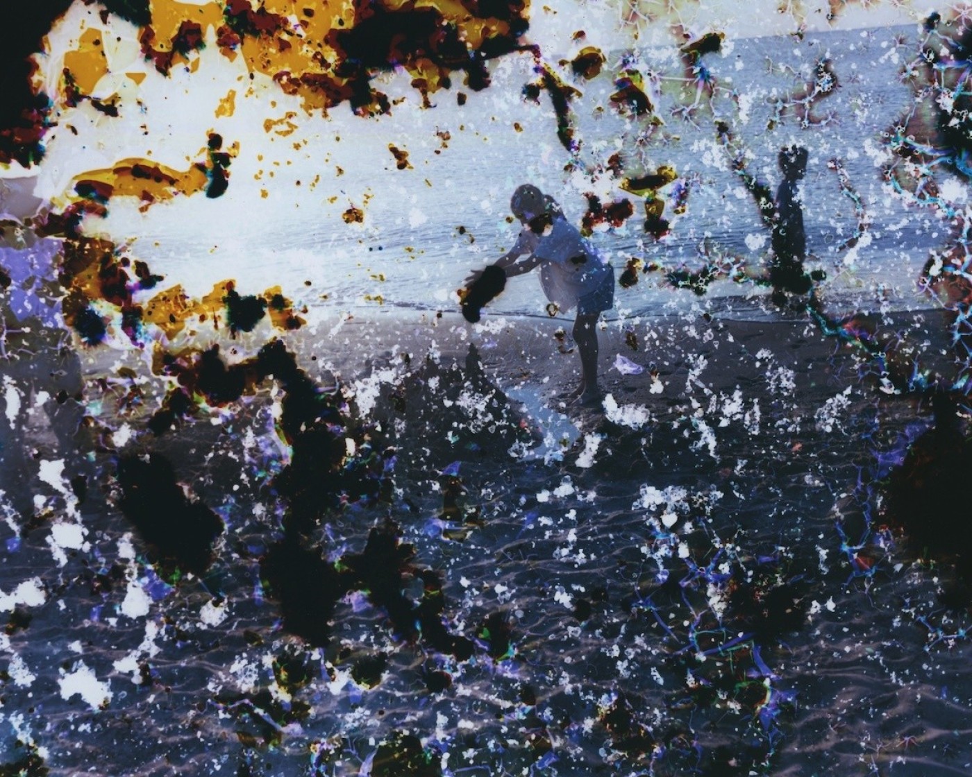 ギャラリーに並ぶのは、変貌した現代の海浜都市と、浸食されたフィルムが描く腐食と再生の風景、そして過去の呼び声に耳を澄ます物語のテキスト。徳川昭武が硝子板に定着させた「明治の光」と対をなす、現代の埋立地に眠る「暗がりの海」の物語。文字と粒子が交錯するこの場所で、過ぎ去った時間が静かに呼吸している。