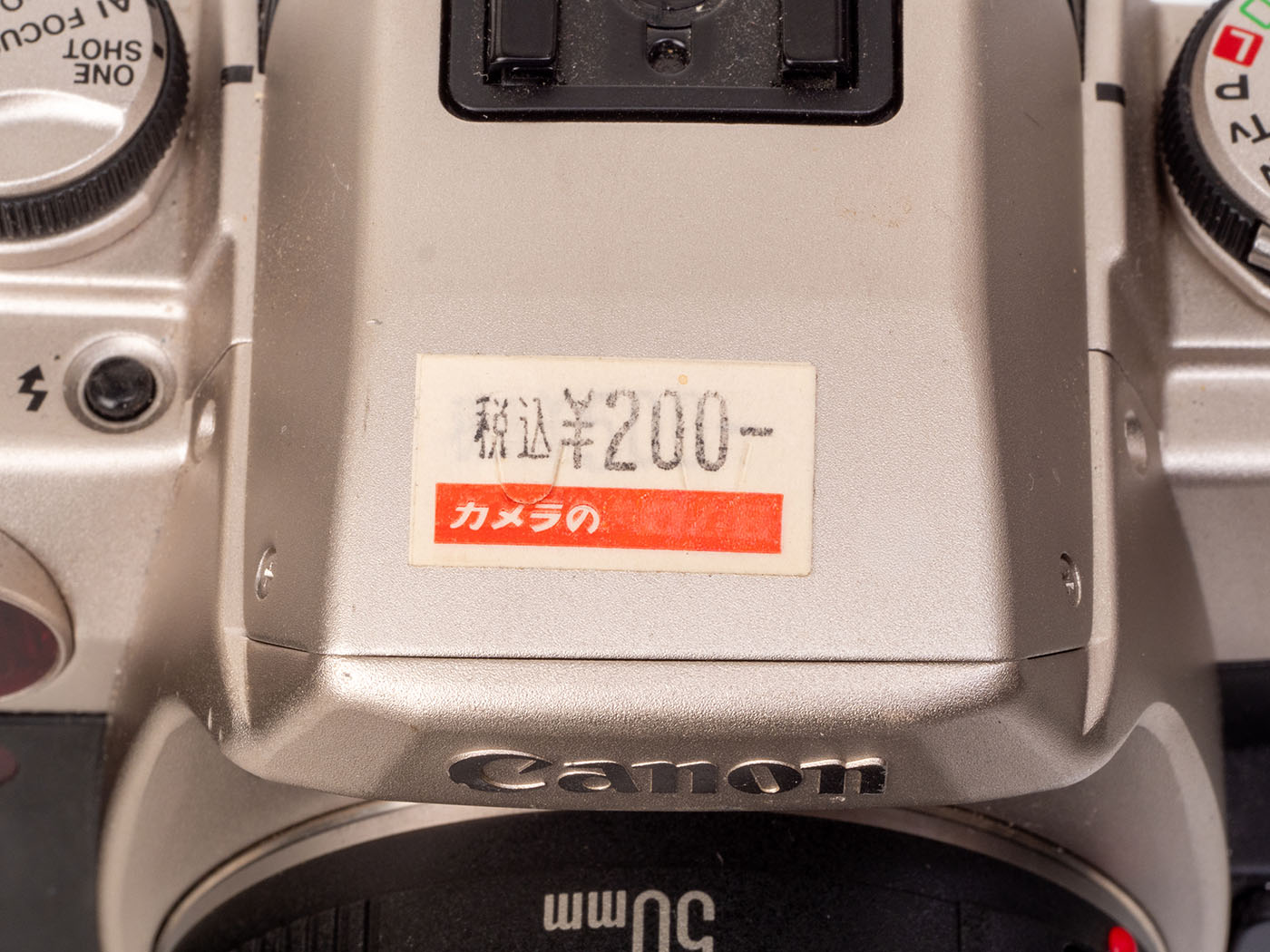 冒頭から何が言いたいのかといえば、今回取り上げる「キヤノンEOS 55」は写真のとおりのお値段で販売されていたので、救出してきたというわけであります。ジャンク品コーナーじゃないですからね、一時期、フィルムカメラ投げ売りの時がありまして、偶然見つけたのであります。