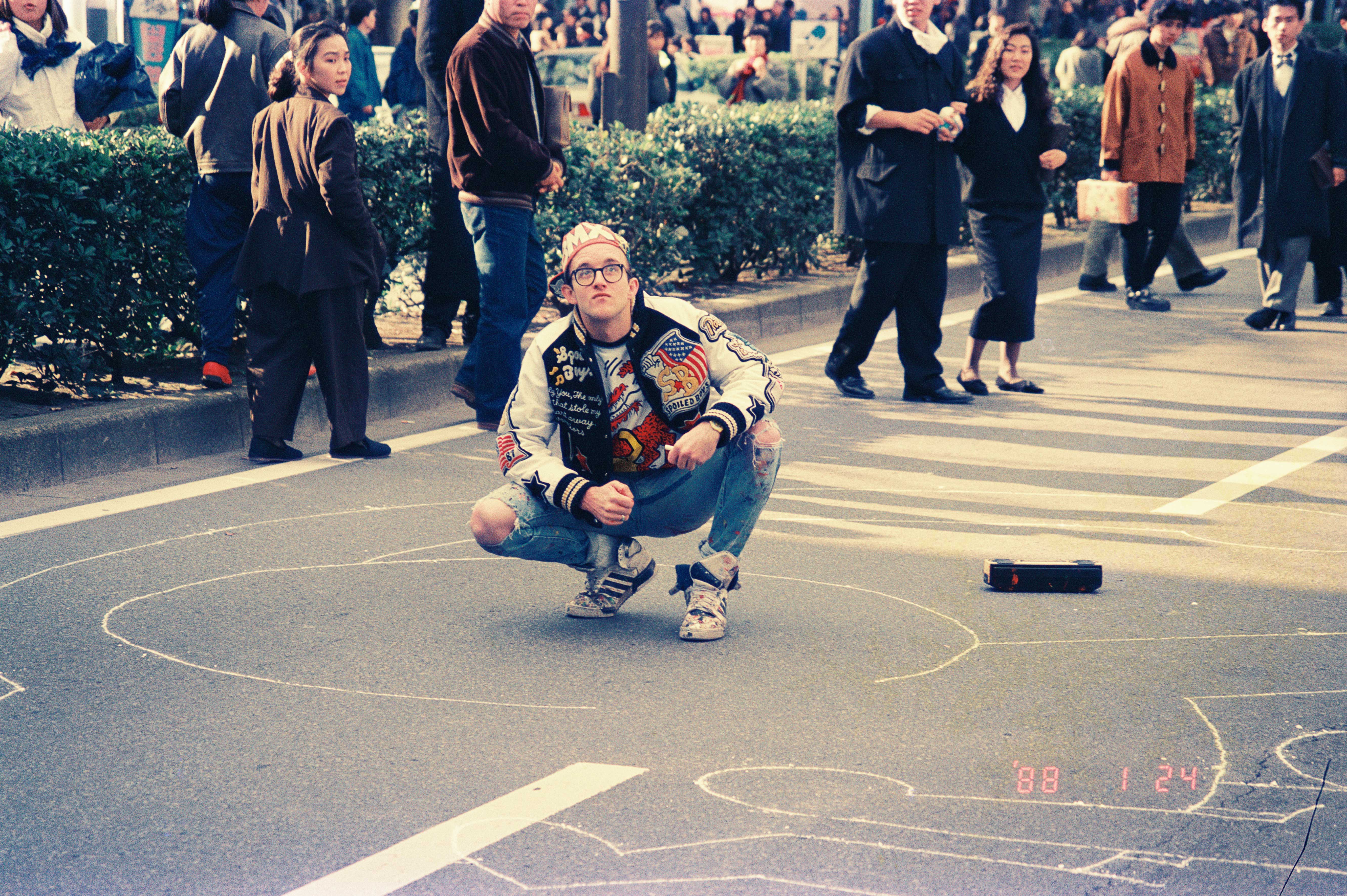 1988年、来日したキース・ヘリングは、表参道の路上で行き交う人々とコミュニケーションを交わしながらパフォーマンスを行った。