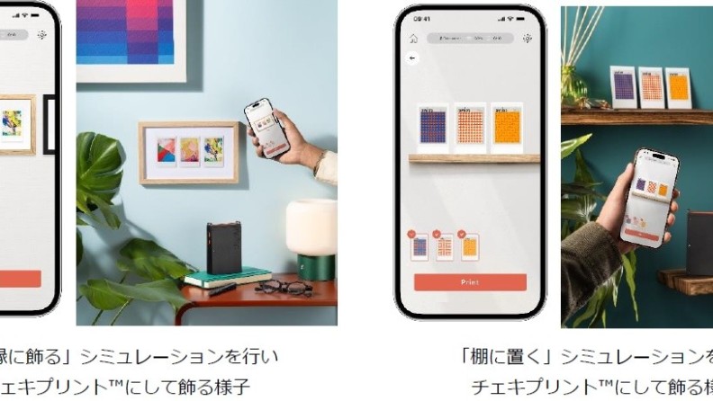 専用アプリでは、従来の「mini Link」シリーズの機能に加え、コンテンツのプリントをより手軽にする新たな機能を搭載。スマホの写真アプリやPinterest®アプリと連携し、各アプリで保存したお気に入りの画像を専用アプリに取り込める。取り込んだ画像はinstax™フレーム付きで一覧表示され、さらに、写真立てやスマホの背面など、チェキプリント™で日常を飾る理想のイメージをプリント前に確認できる「シミュレーション機能」を新搭載。 “お気に入り”のコンテンツをチェキプリント™にして飾るまでの流れをスムーズにし、チェキプリント™で日常を彩る楽しみを広げる。
