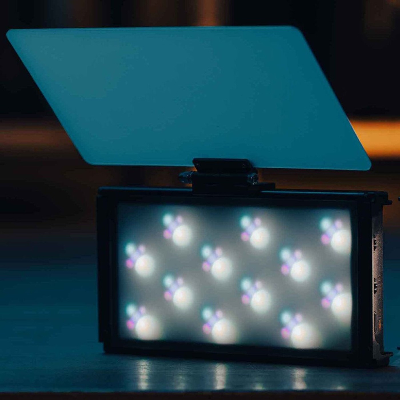 堅牢・耐久生に優れた、高い汎用性を持つ高機能ポータブルフルカラーLEDライト。- 背面にスチールが備えられており、マグネット仕様のさまざまなアクセサリーを用いることができる。また上下に1/4ネジ穴には、付属のディフューザーの他、任意のハンドヘルドデバイスを装着することができる。
